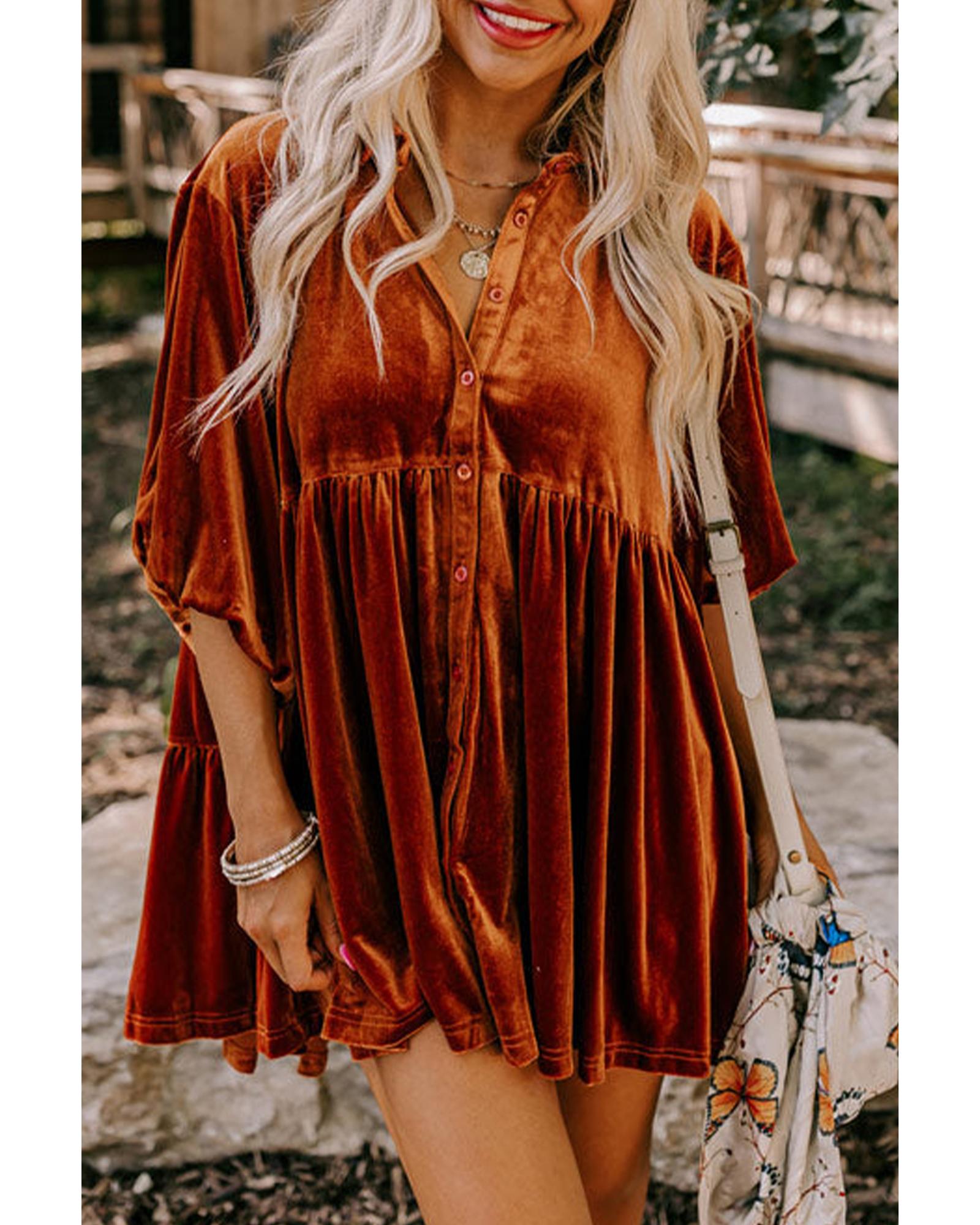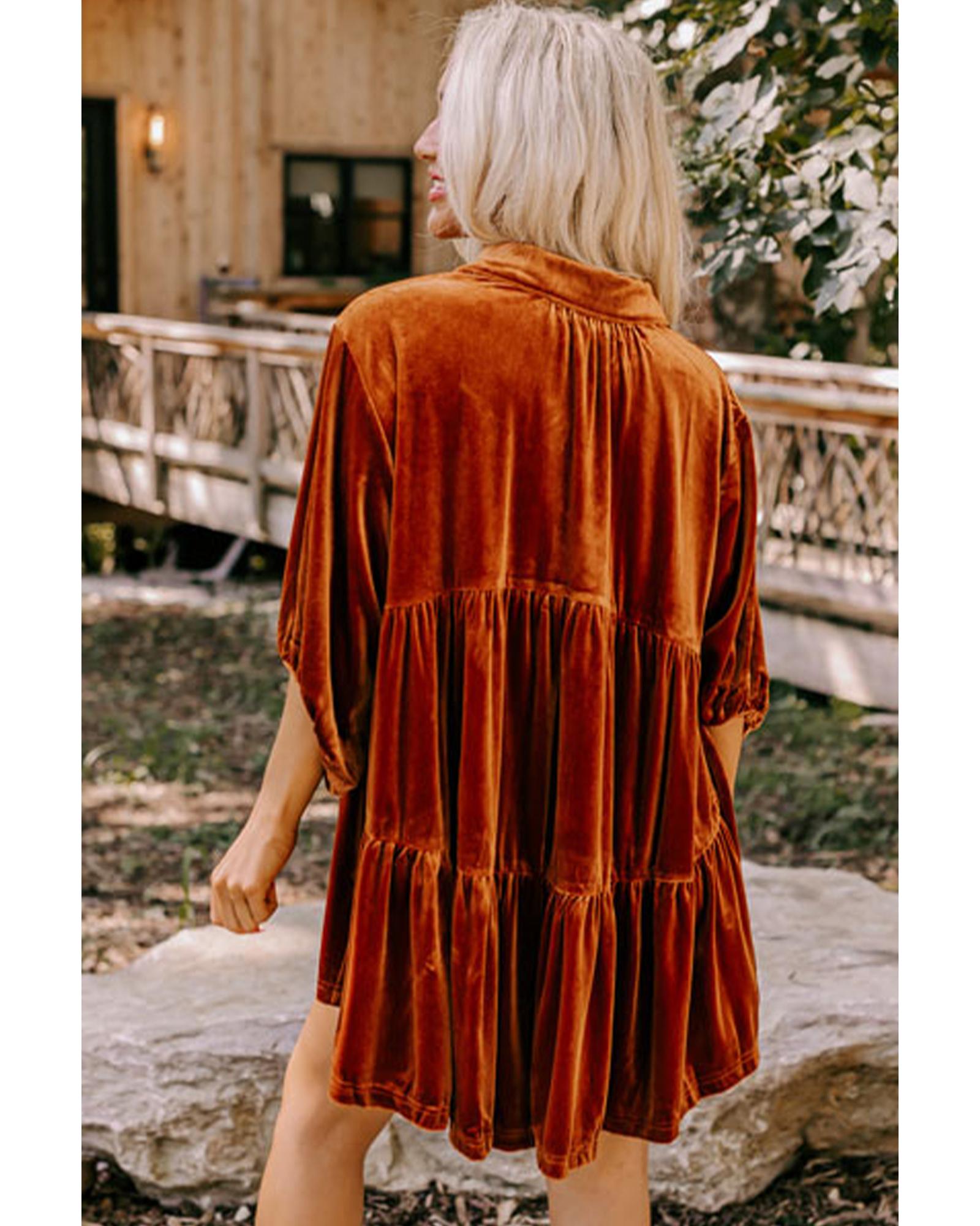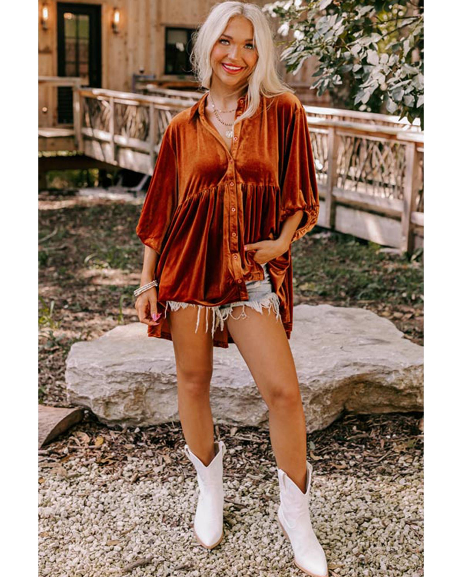 Azura Exchange Chestnut 3/4 Sleeve Tunic Babydoll Velvet Shirt – L