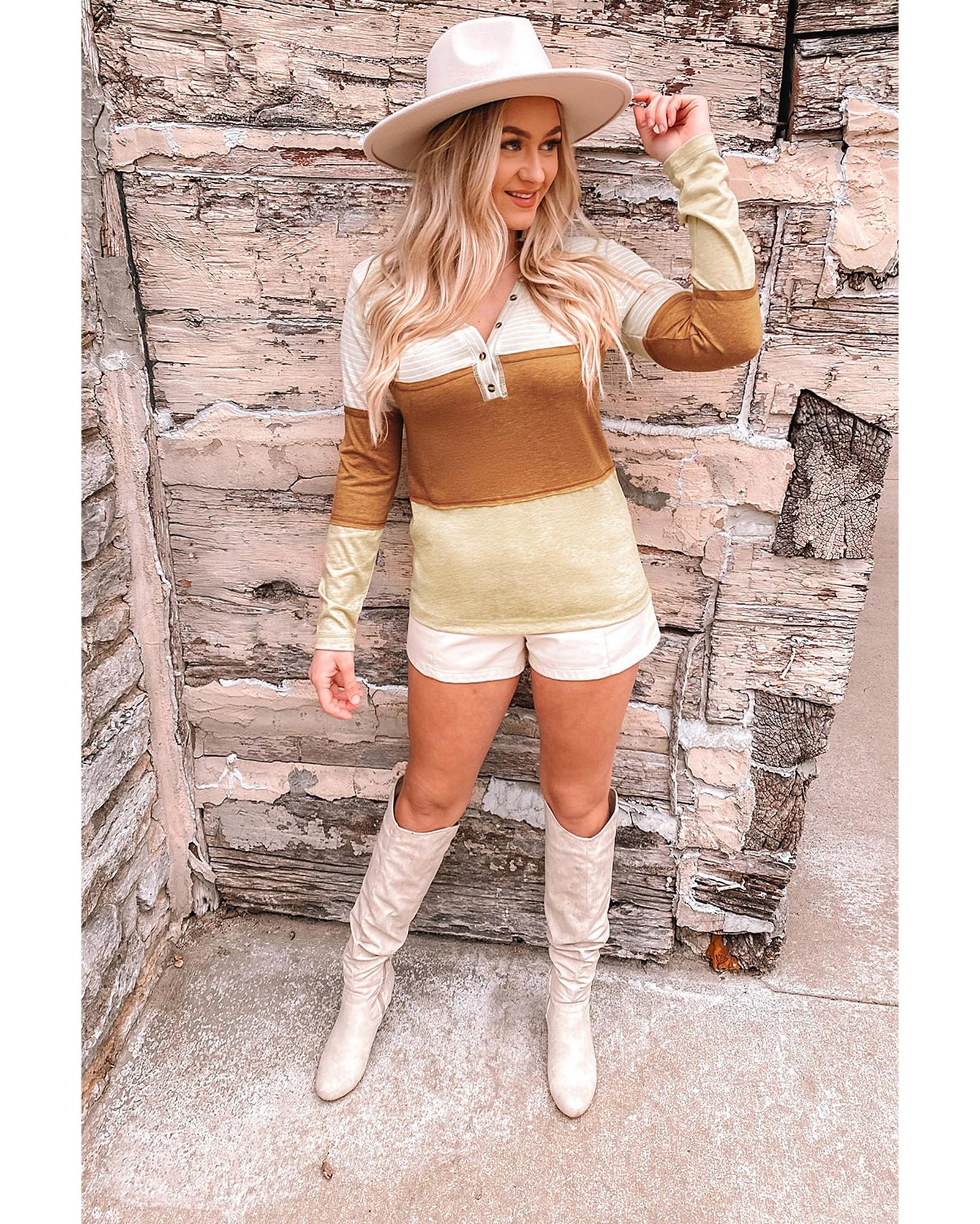 Azura Exchange Buttoned Waffle Knit Long Sleeve Top - S