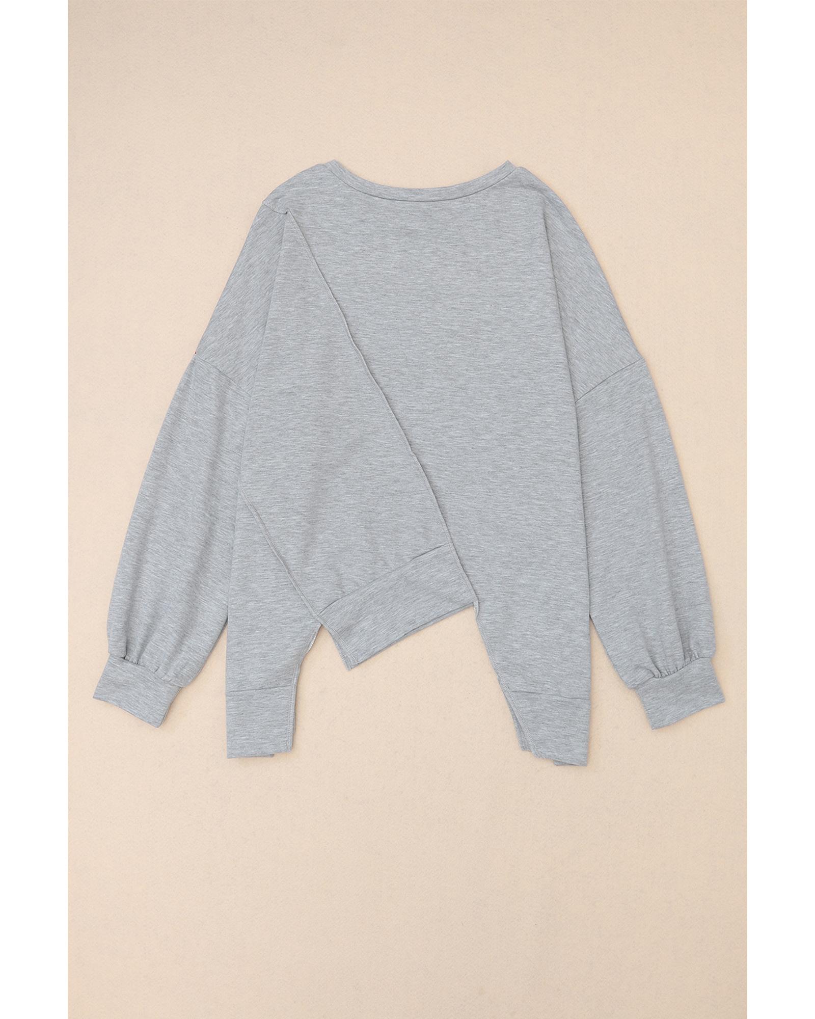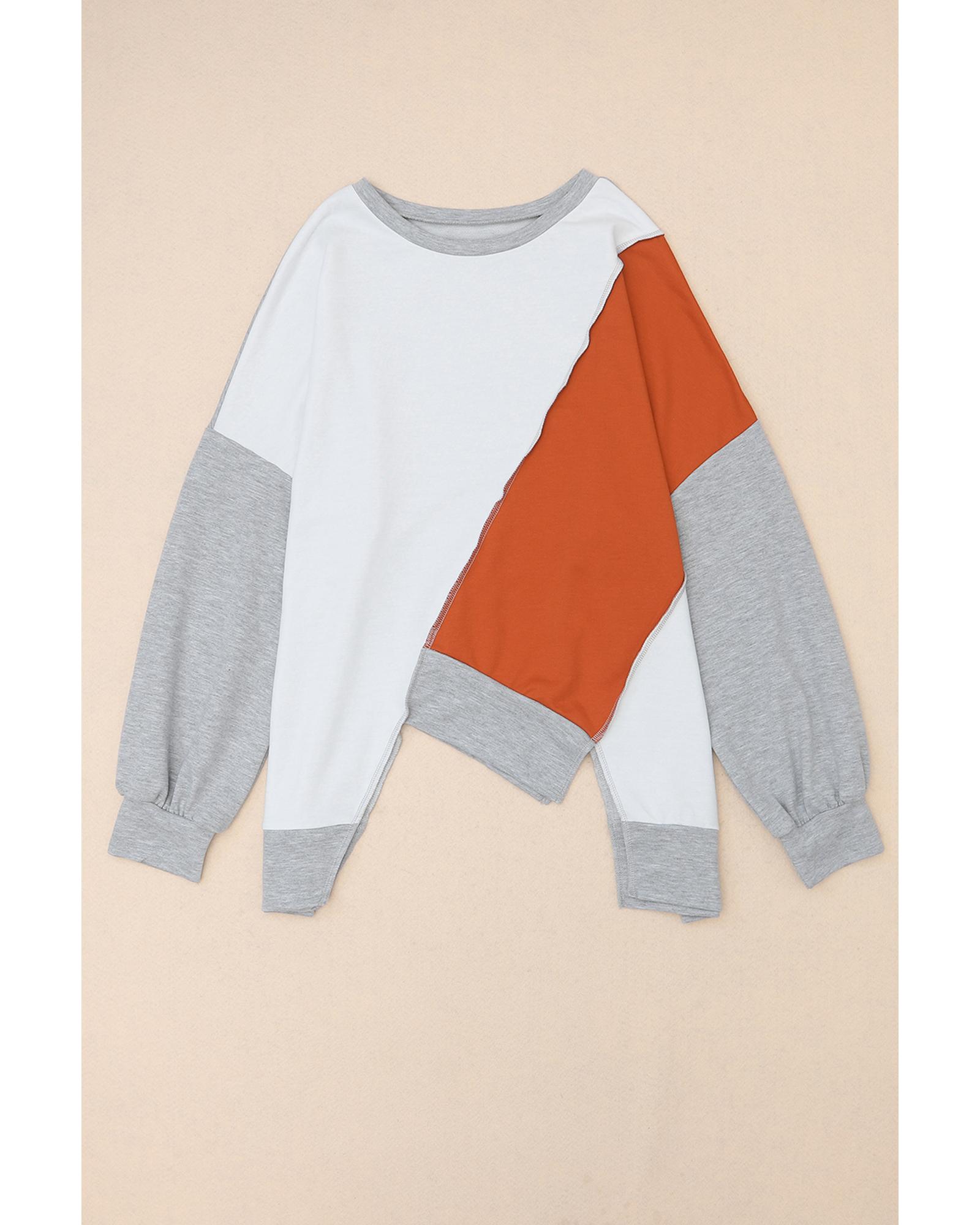 Azura Exchange Colorblock Stitching Irregular Hem Long Sleeve Top – L