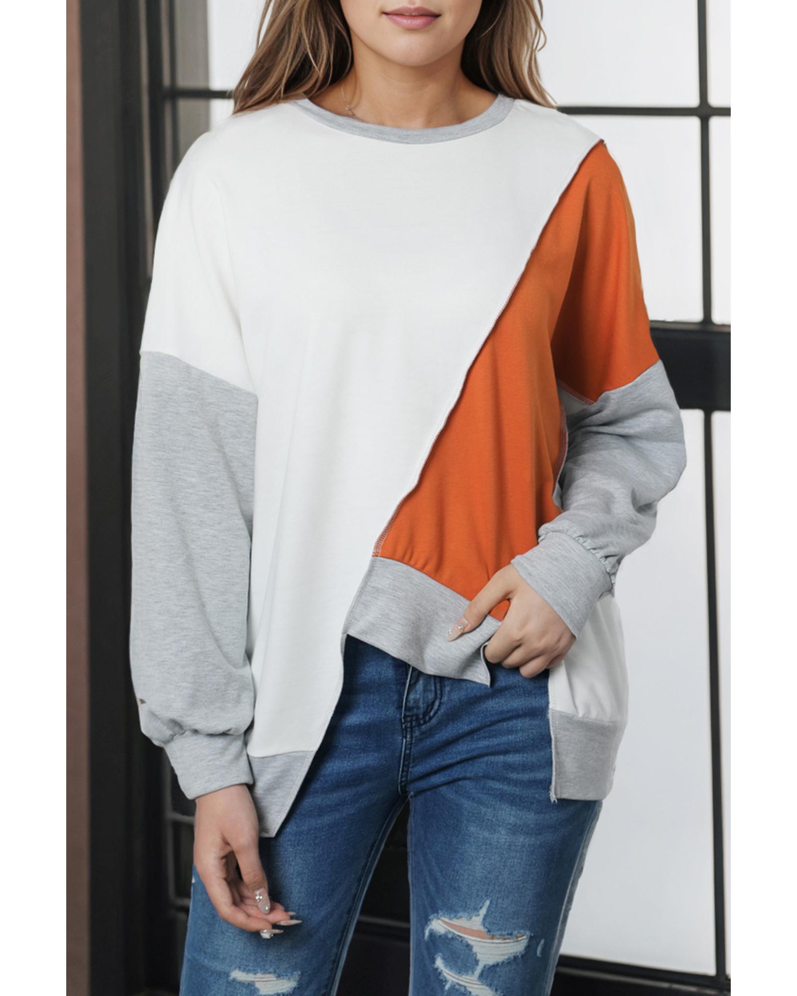 Azura Exchange Colorblock Stitching Irregular Hem Long Sleeve Top – M