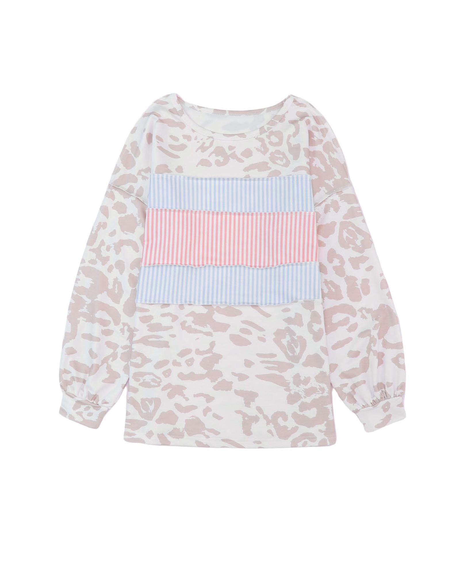 Azura Exchange Contrast Stripes Patchwork Puff Sleeve Knit Top - L