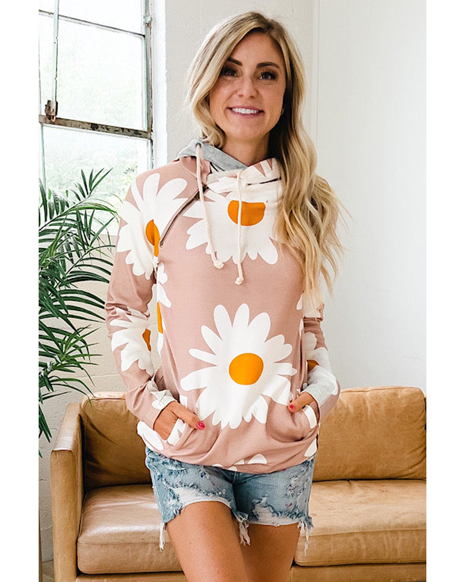 Azura Exchange Daisy Print Doublehood Sweatshirt – M