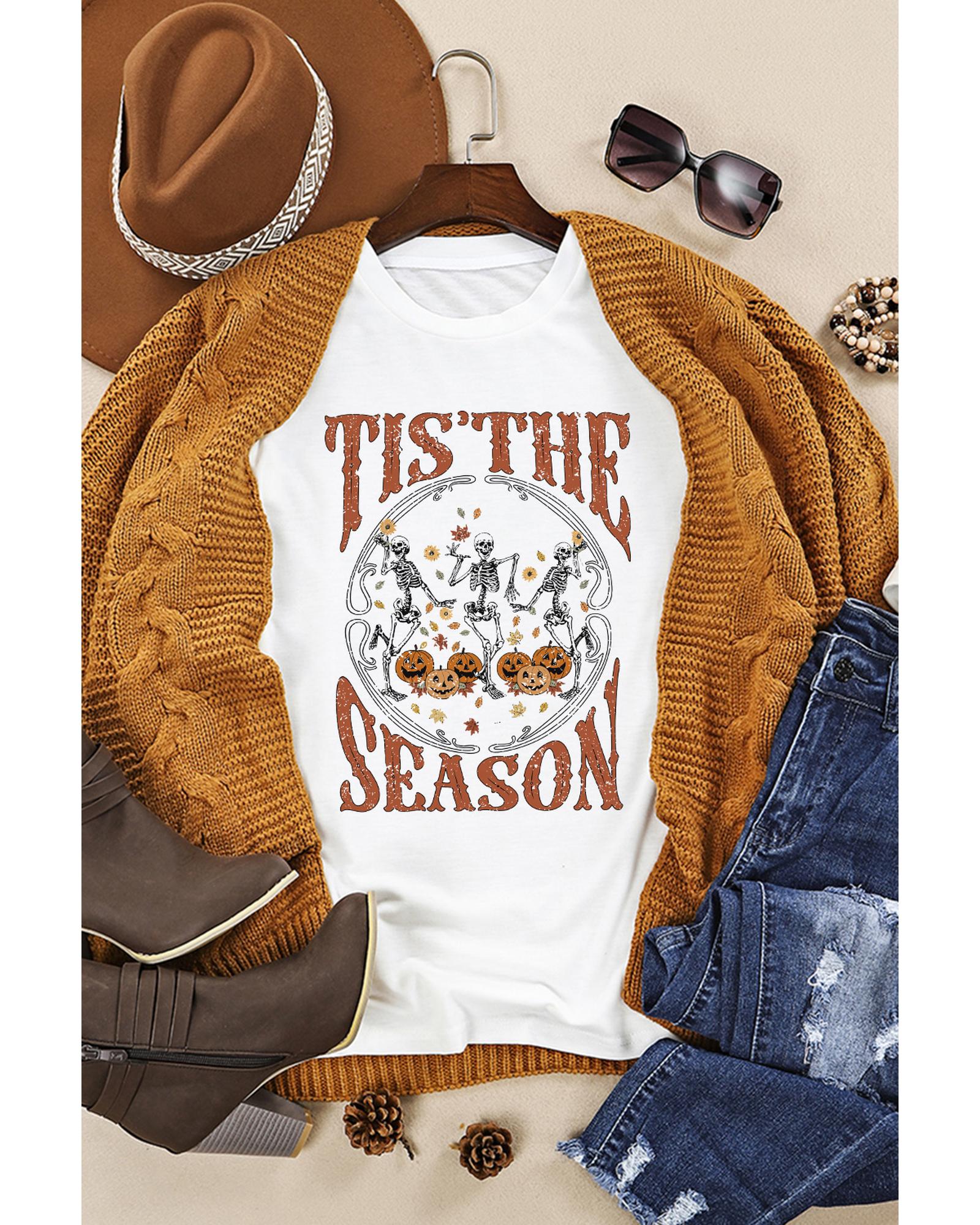 - Stylish and trendy White Halloween Season Dancing Skeleton Graphic Tee