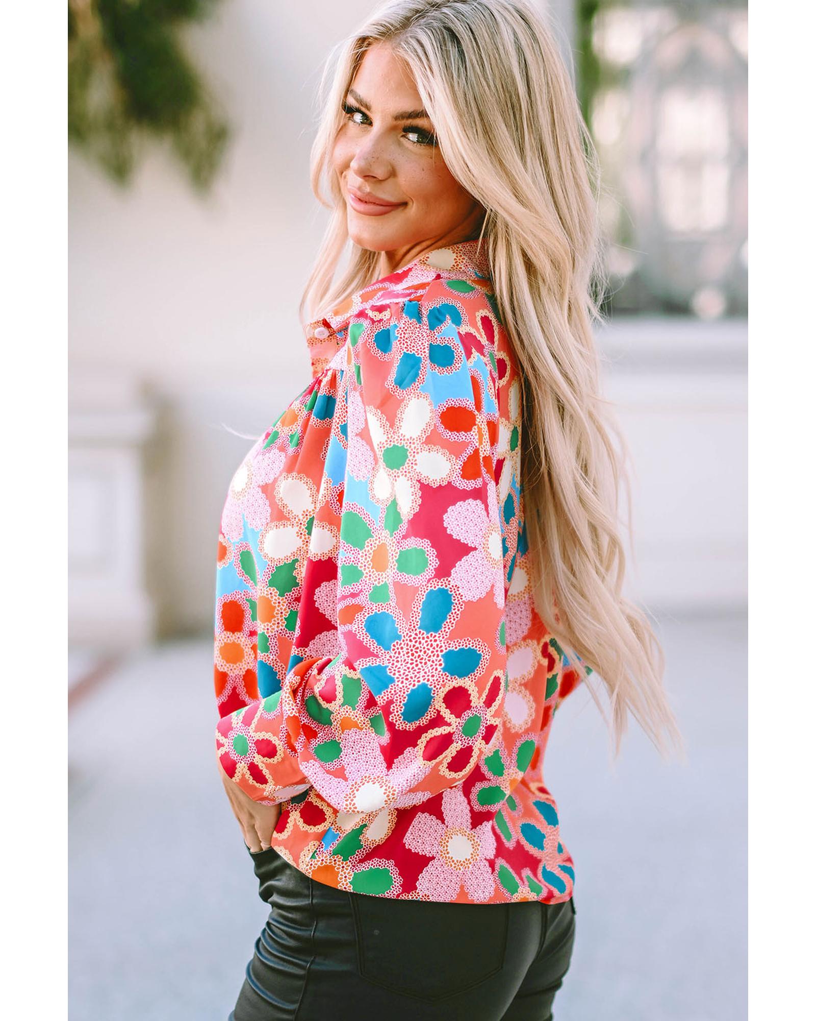 Azura Exchange Floral Print Bubble Sleeve Shirt – S