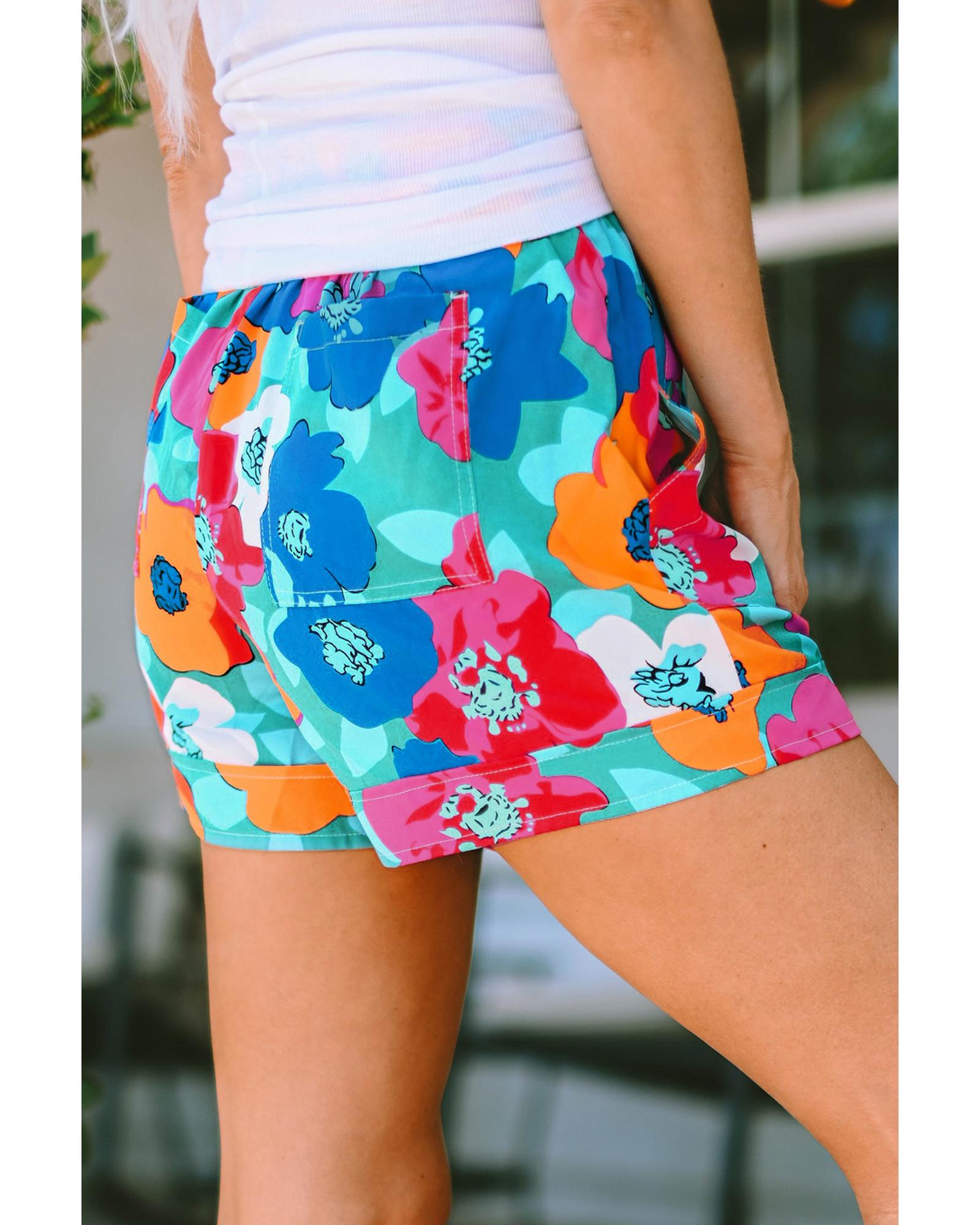 Azura Exchange Floral Print Drawstring Waist Casual Shorts - S