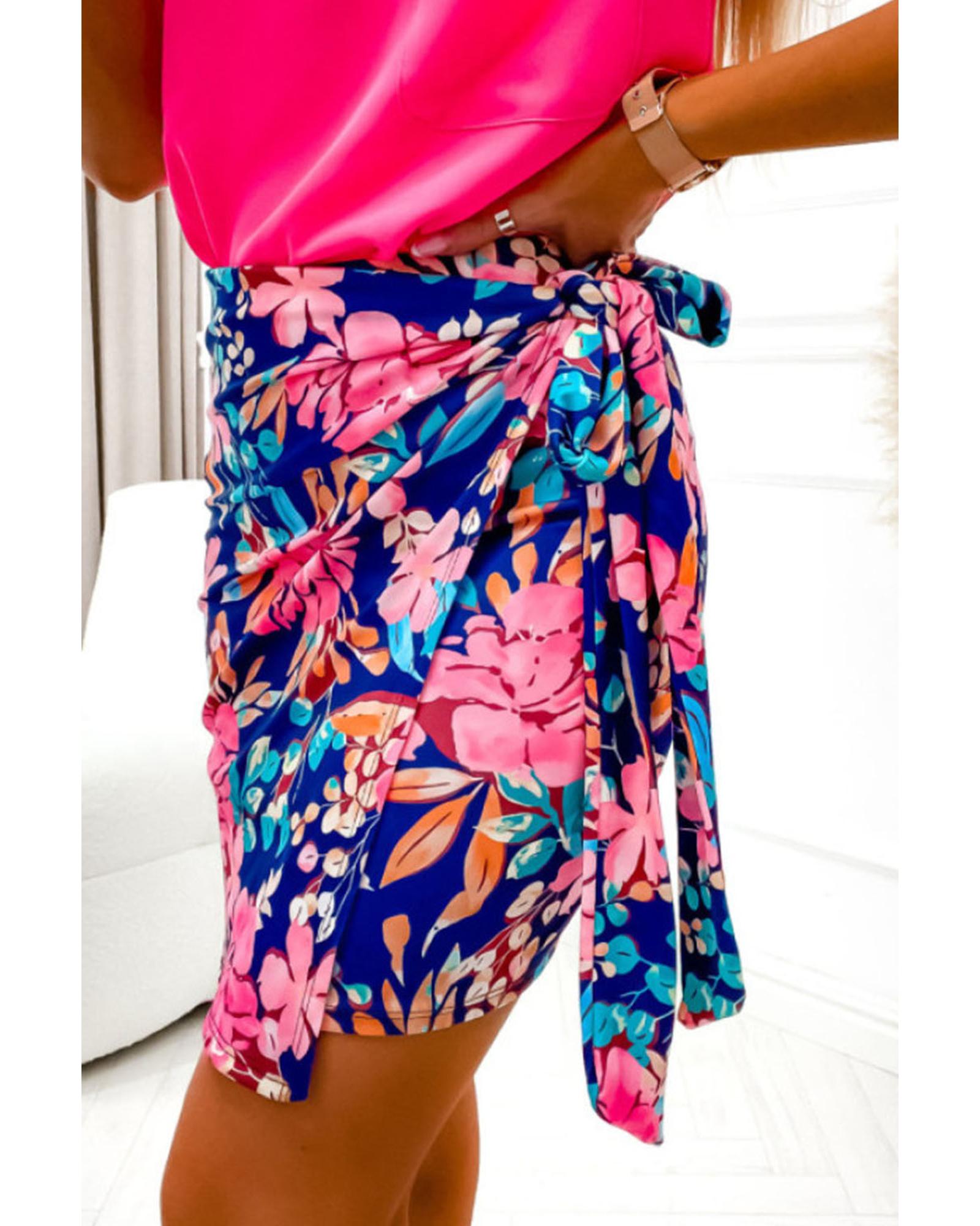 Azura Exchange Floral Print Lace-up Bodycon Mini Skirt - XL