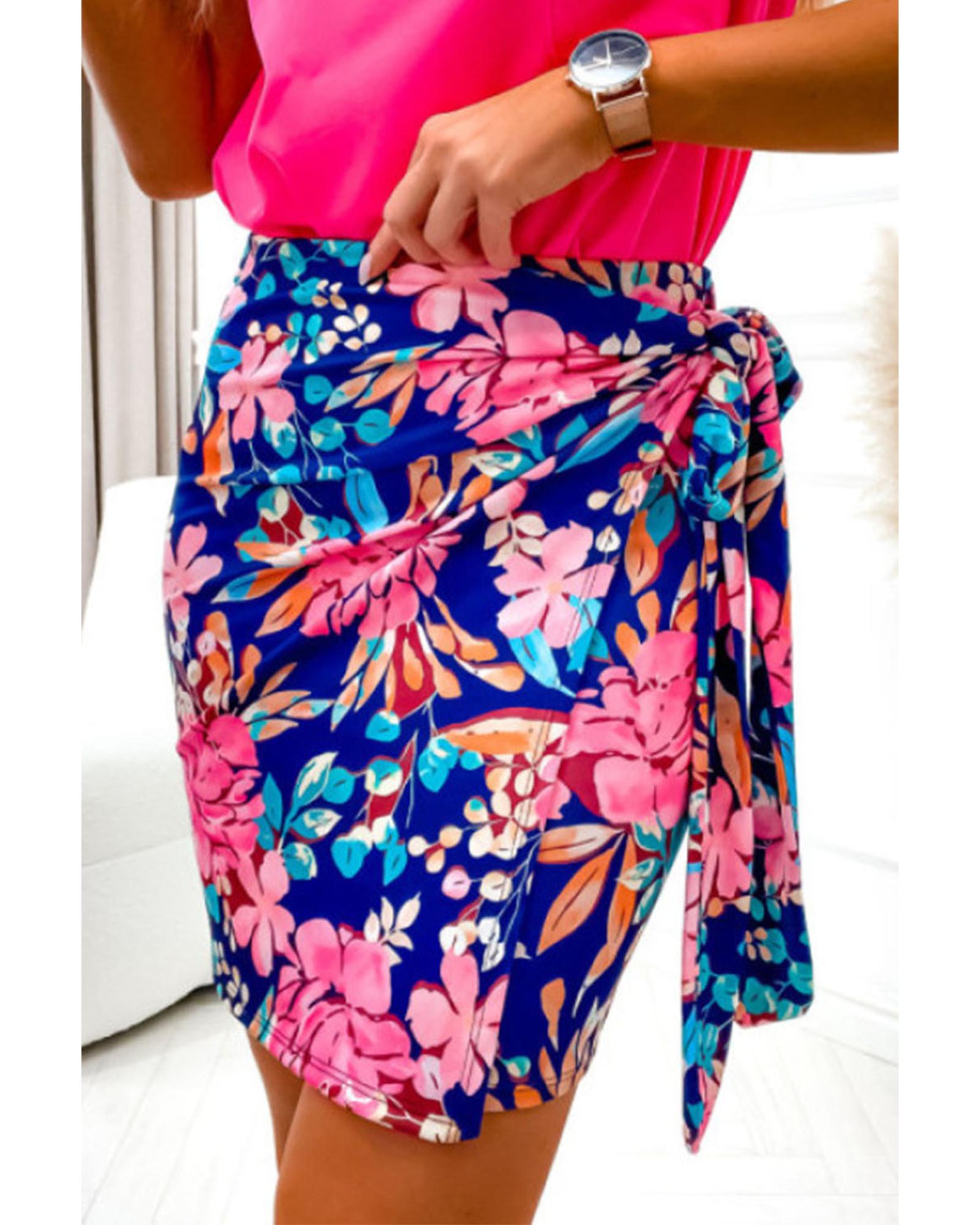 Azura Exchange Floral Print Lace-up Bodycon Mini Skirt - XL