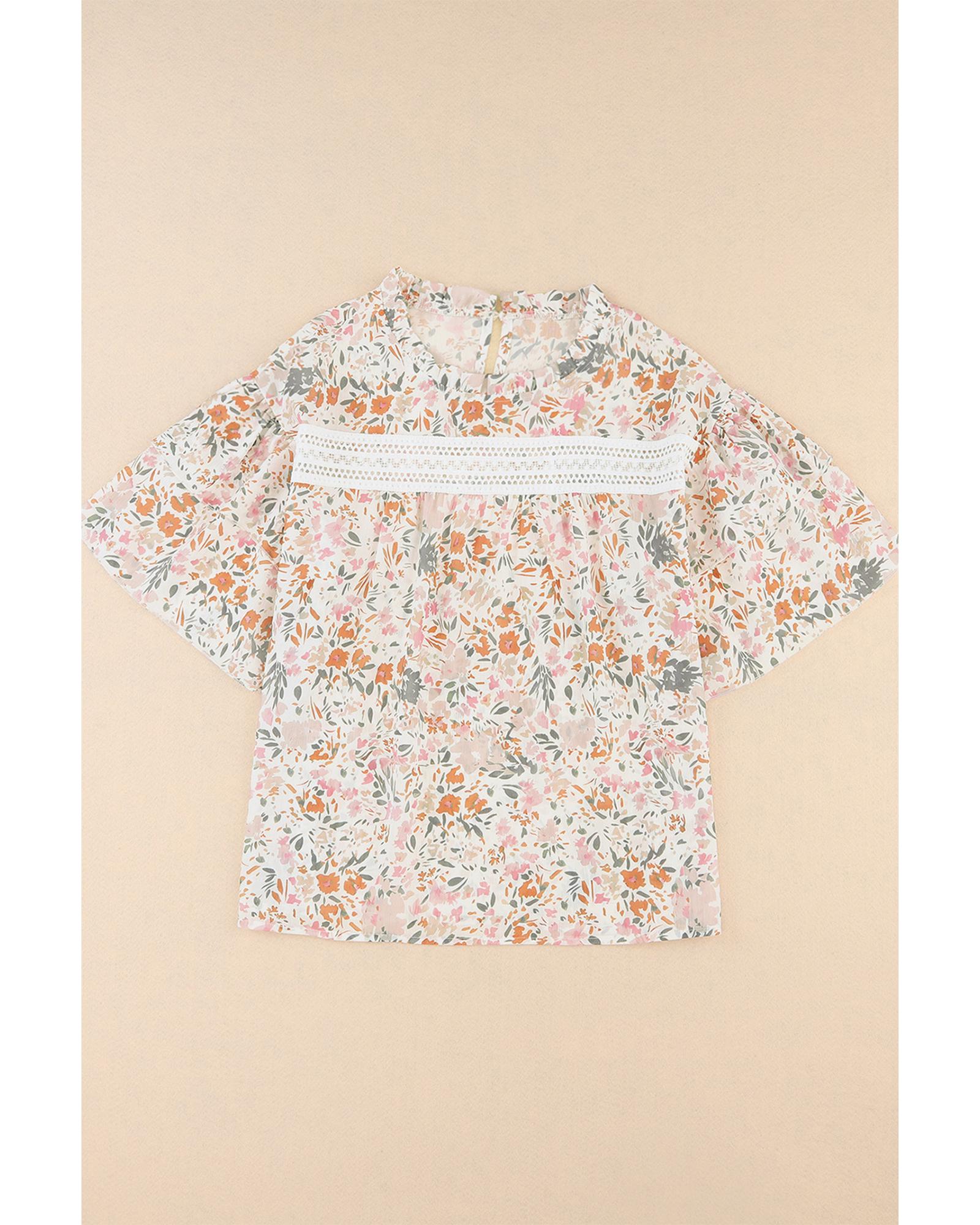 - Multicolor Floral Print Wide Ruffle Sleeves Blouse