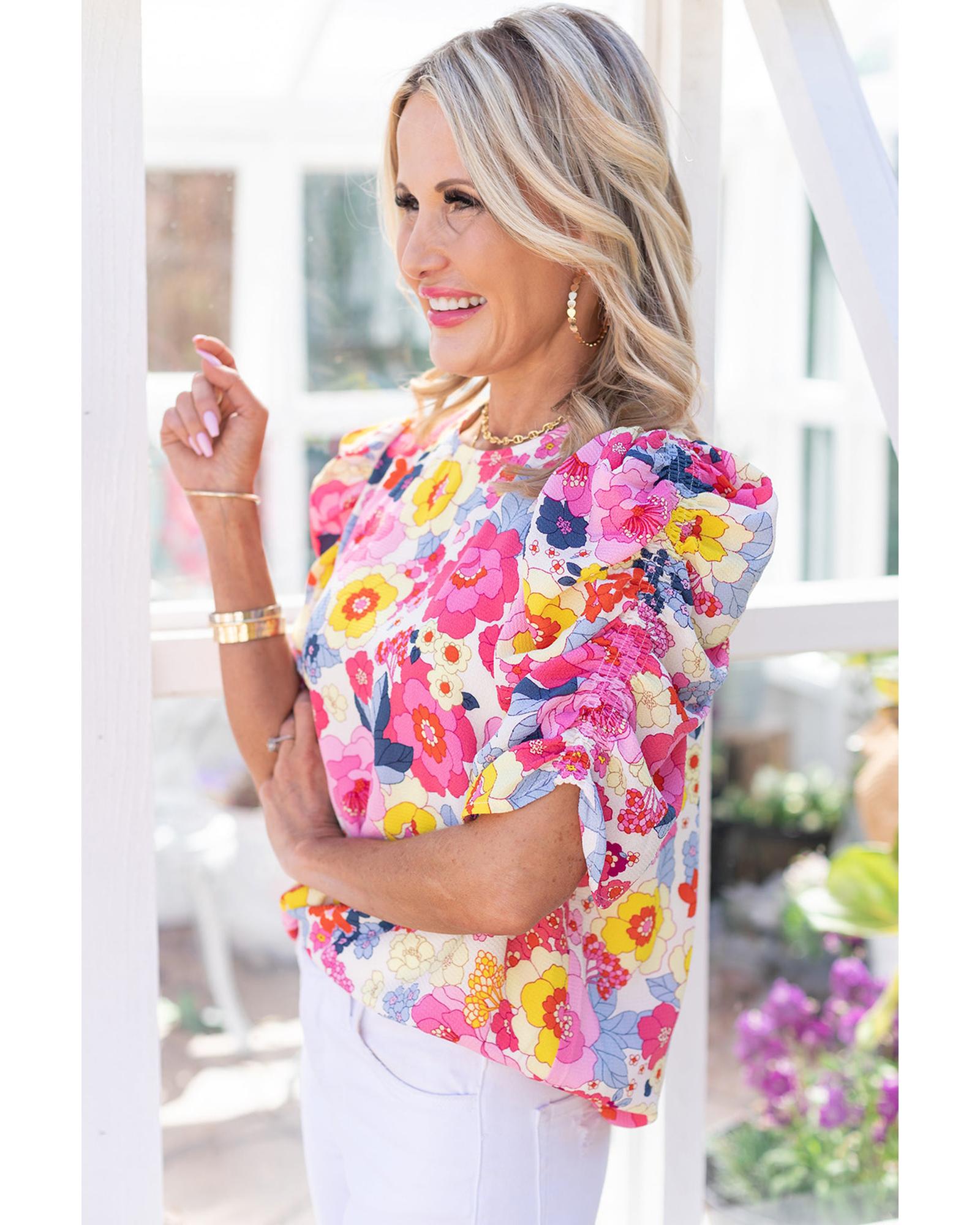 Azura Exchange Floral Print Bubble Sleeve Shirt - S Original price was: $64.99.Current price is: $34.99.