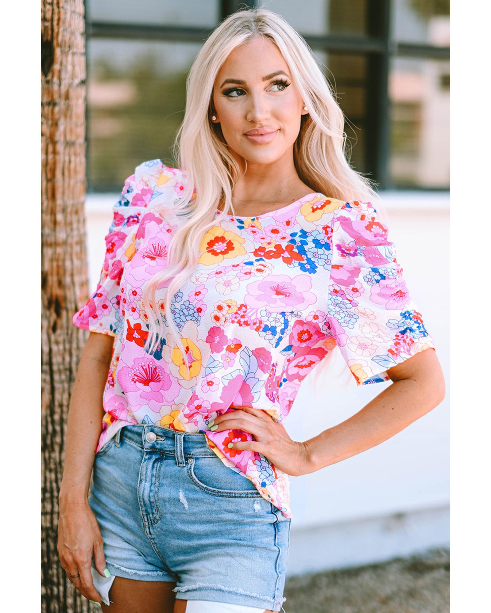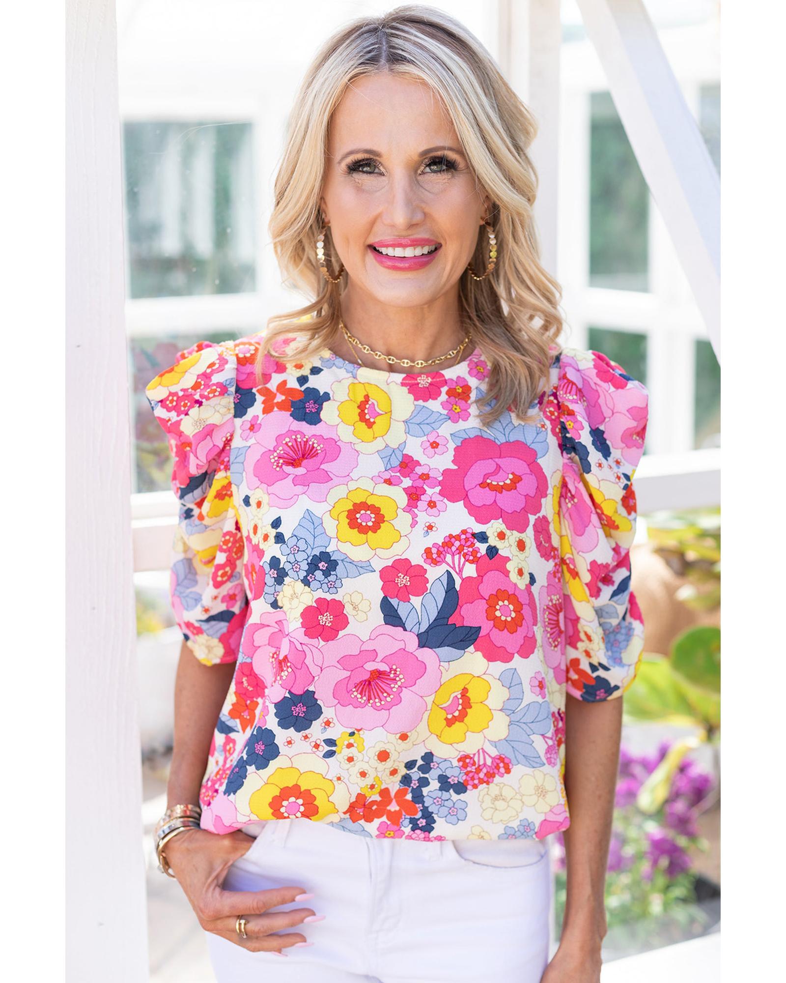 Azura Exchange Floral Print Bubble Sleeve Shirt - S