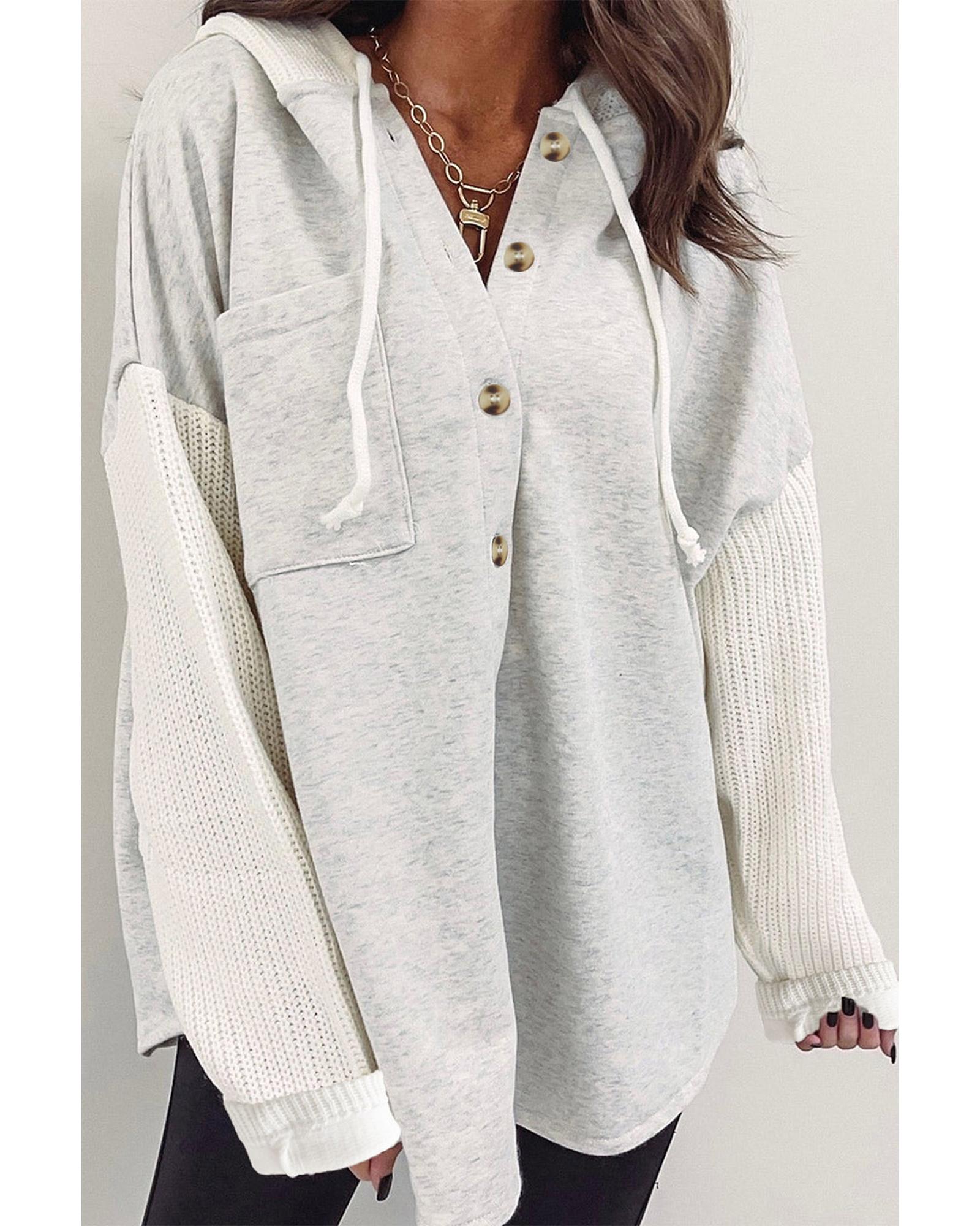 Azura Exchange Gray Button Up Contrast Knitted Sleeves Hooded Jacket – S