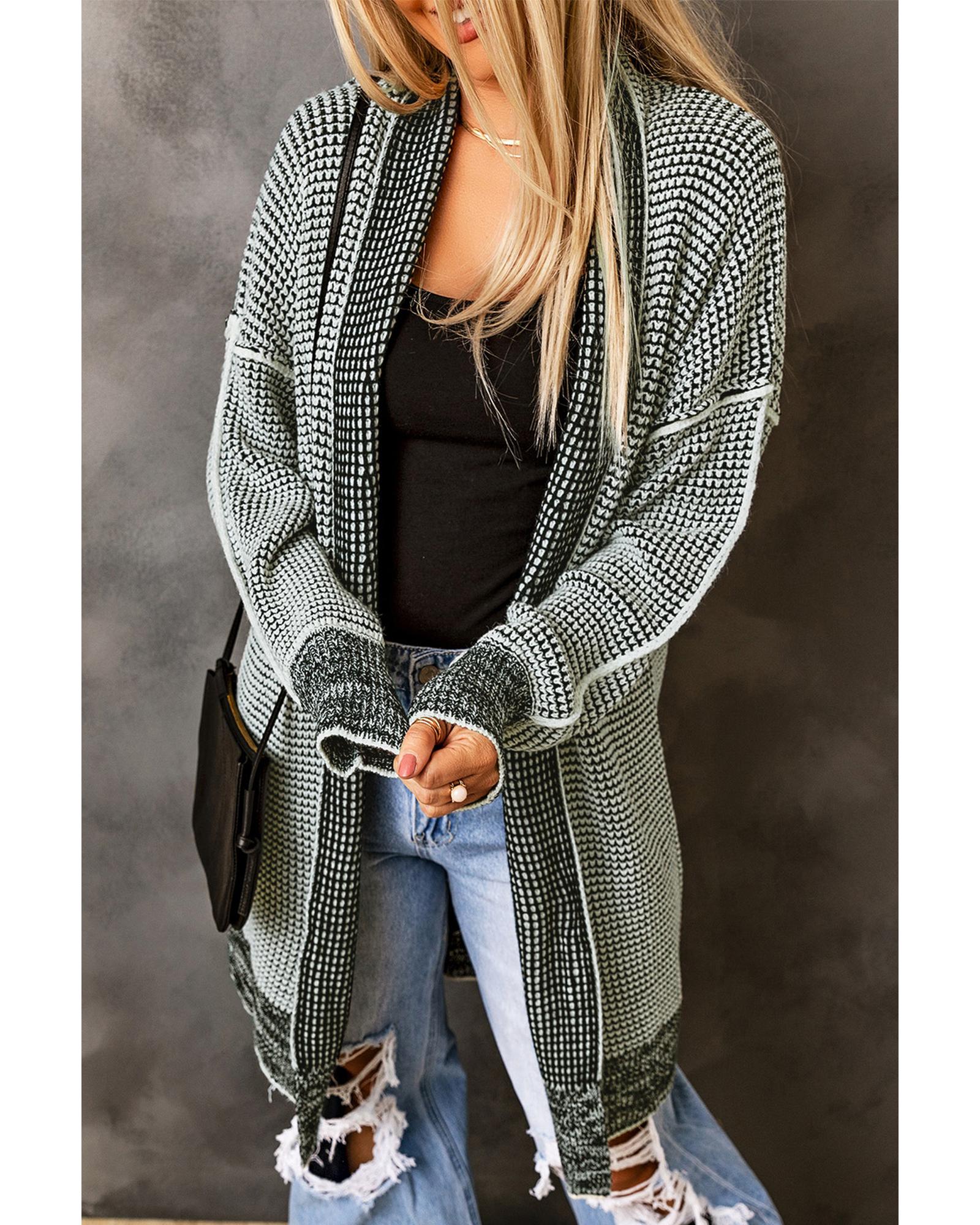 Azura Exchange Gray Plaid Knitted Long Open Front Cardigan – M