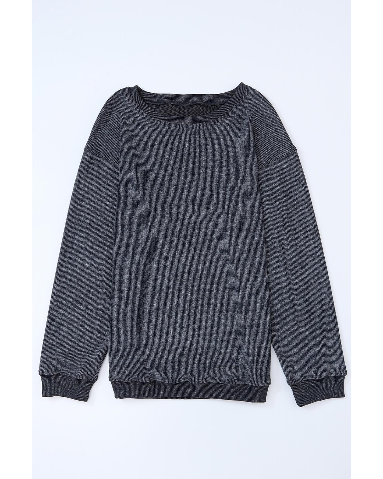 Azura Exchange Gray Ribbed Knit Round Neck Pullover Sweatshirt - S