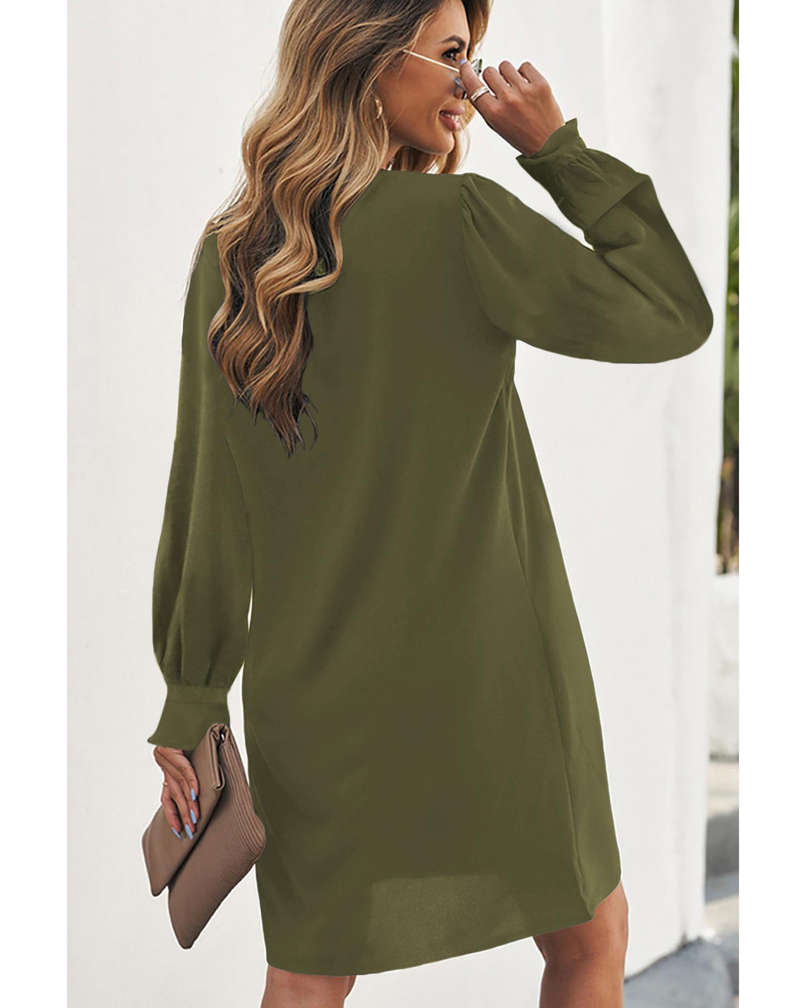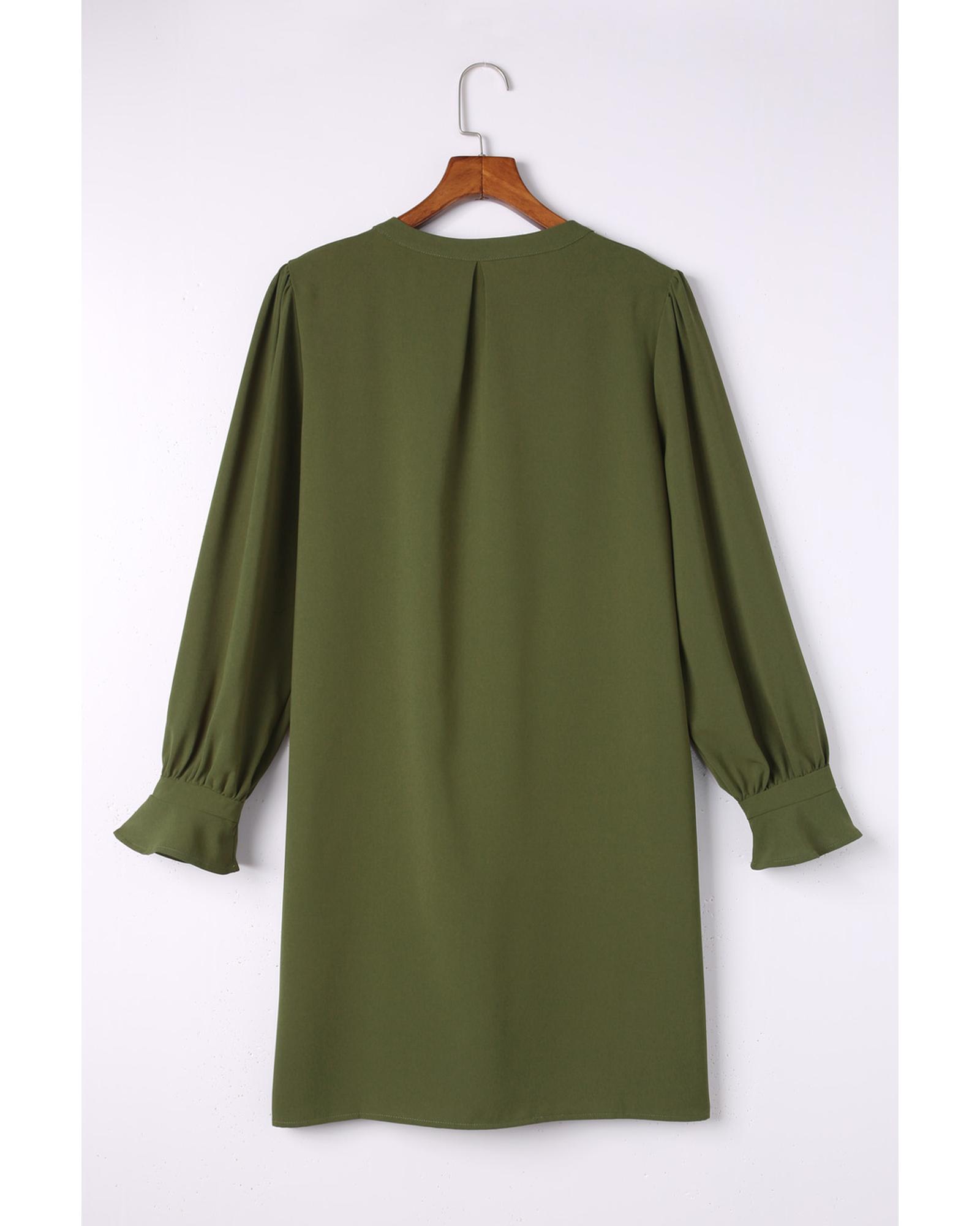 Azura Exchange Green Split V Neck Ruffled Sleeves Shirt Dress - XL