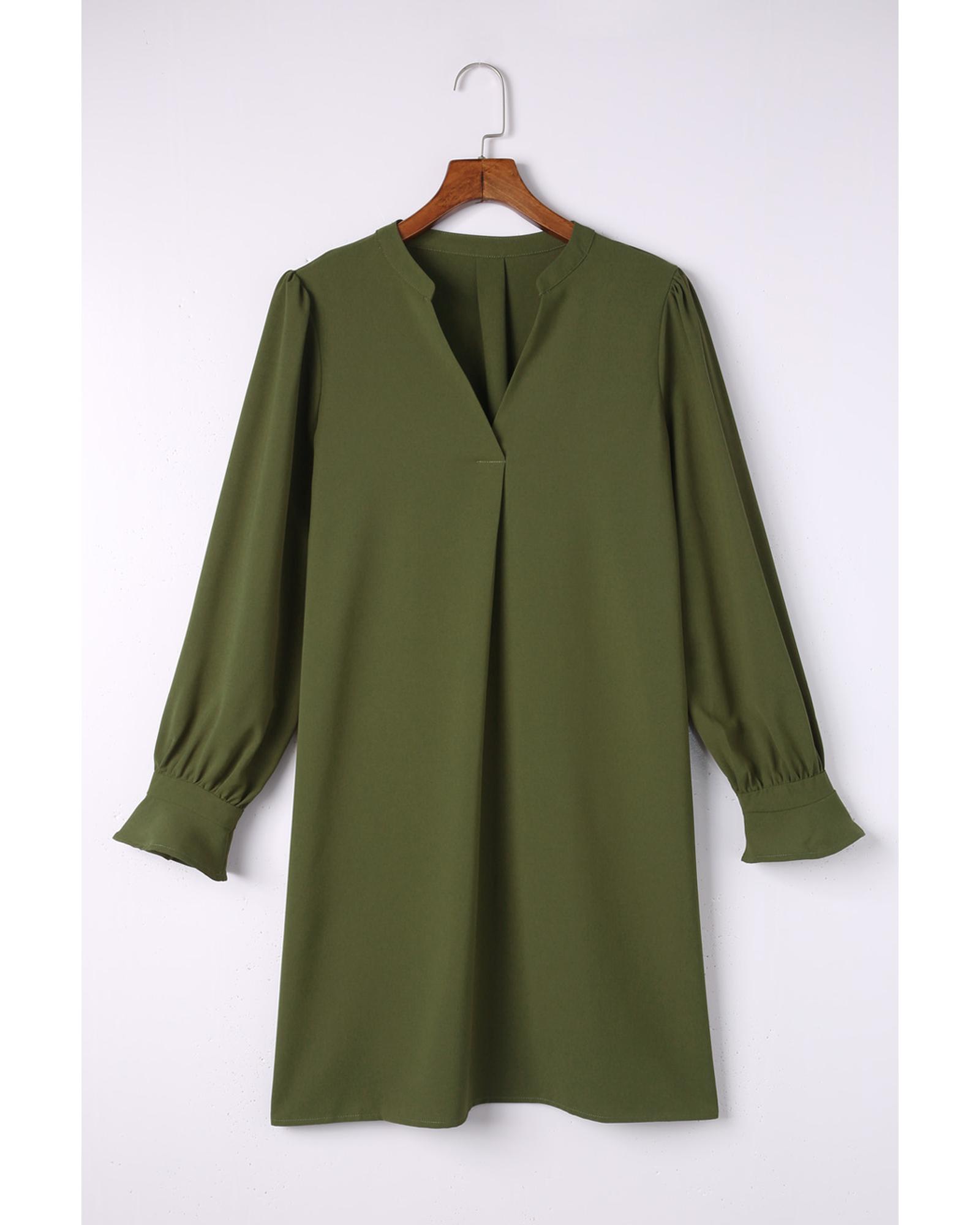 Azura Exchange Green Split V Neck Ruffled Sleeves Shirt Dress – S