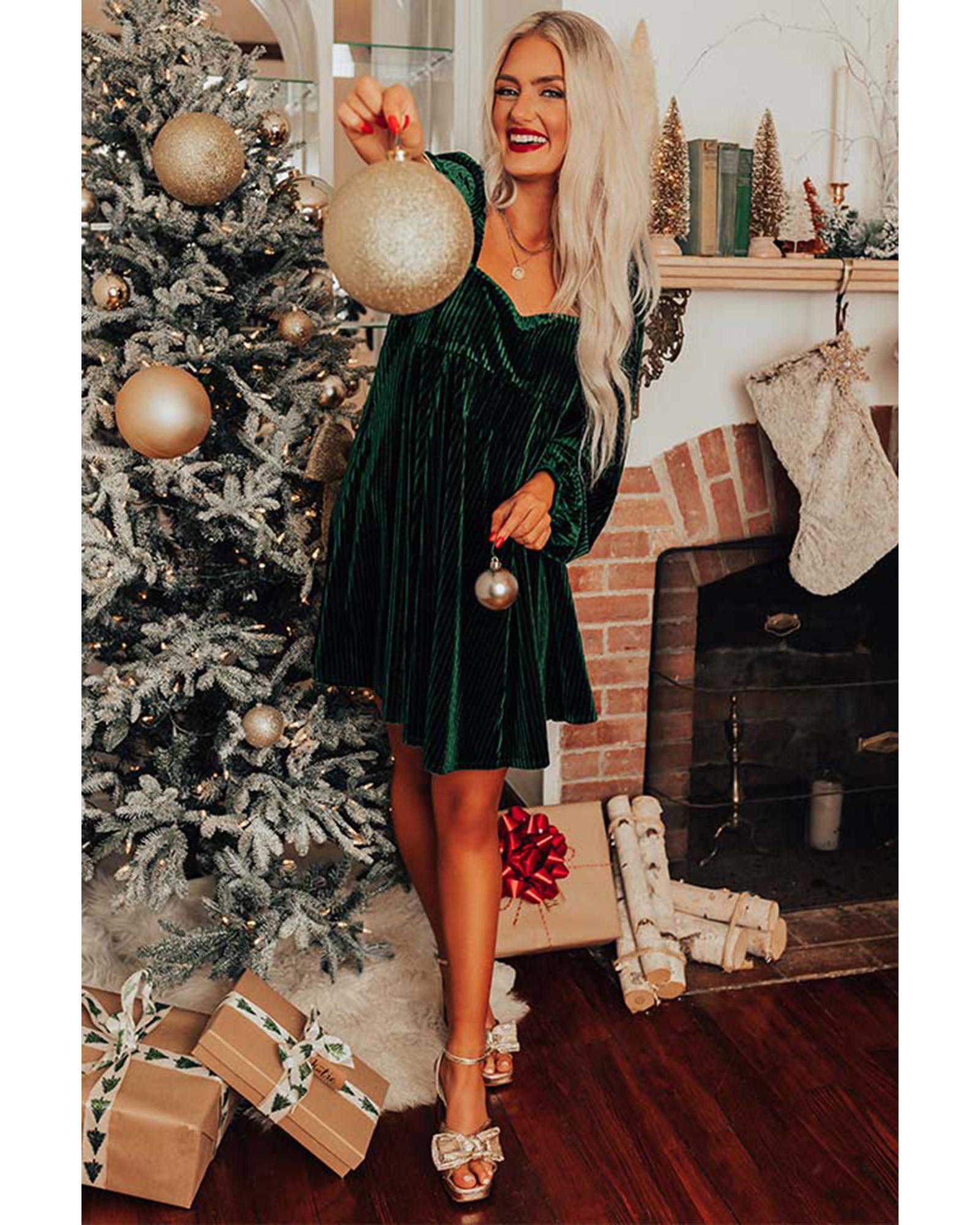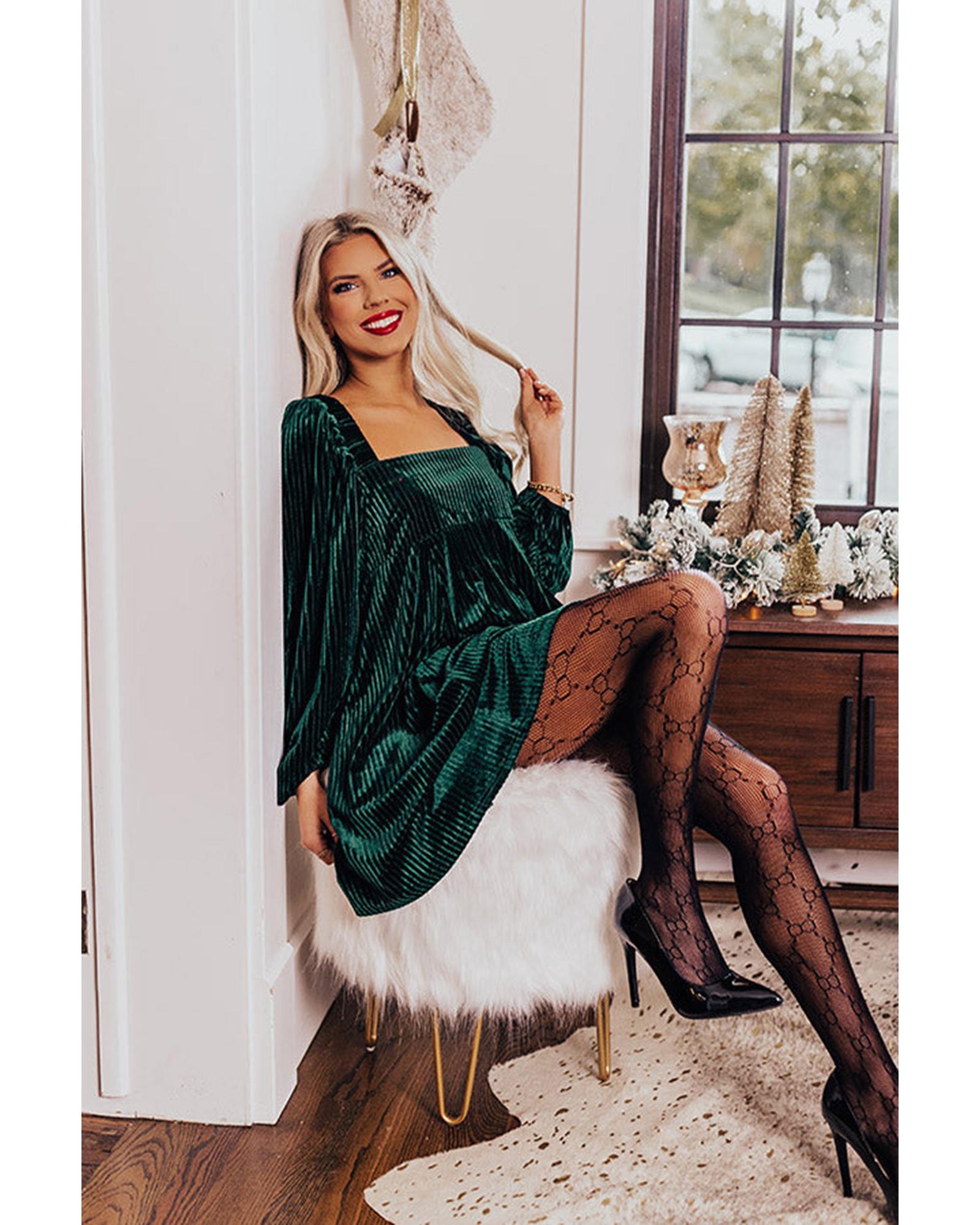 Azura Exchange Green Tie Back Square Neck Velvet Babydoll Dress – XL