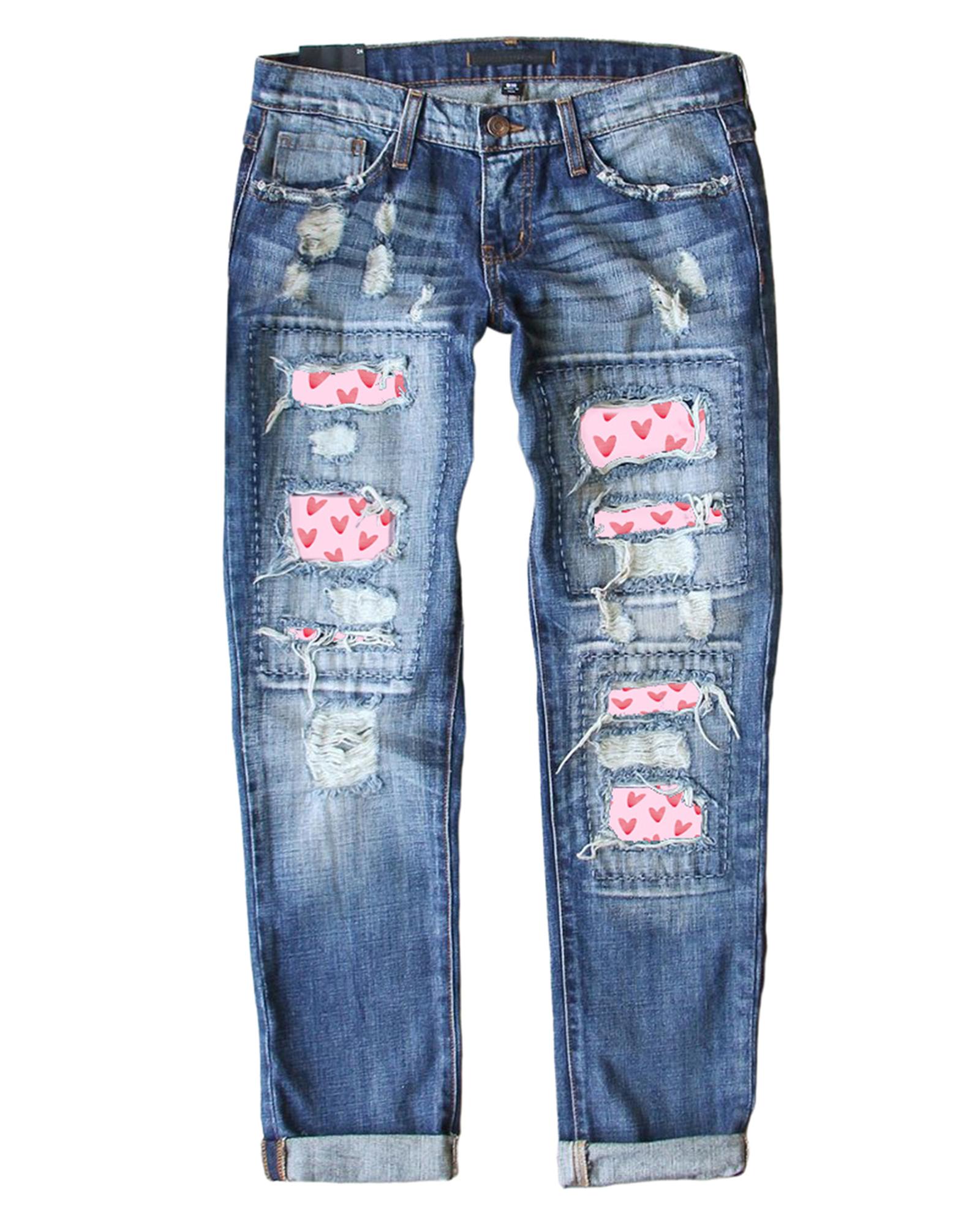 Azura Exchange Heart Patchwork Jeans – 8 US
