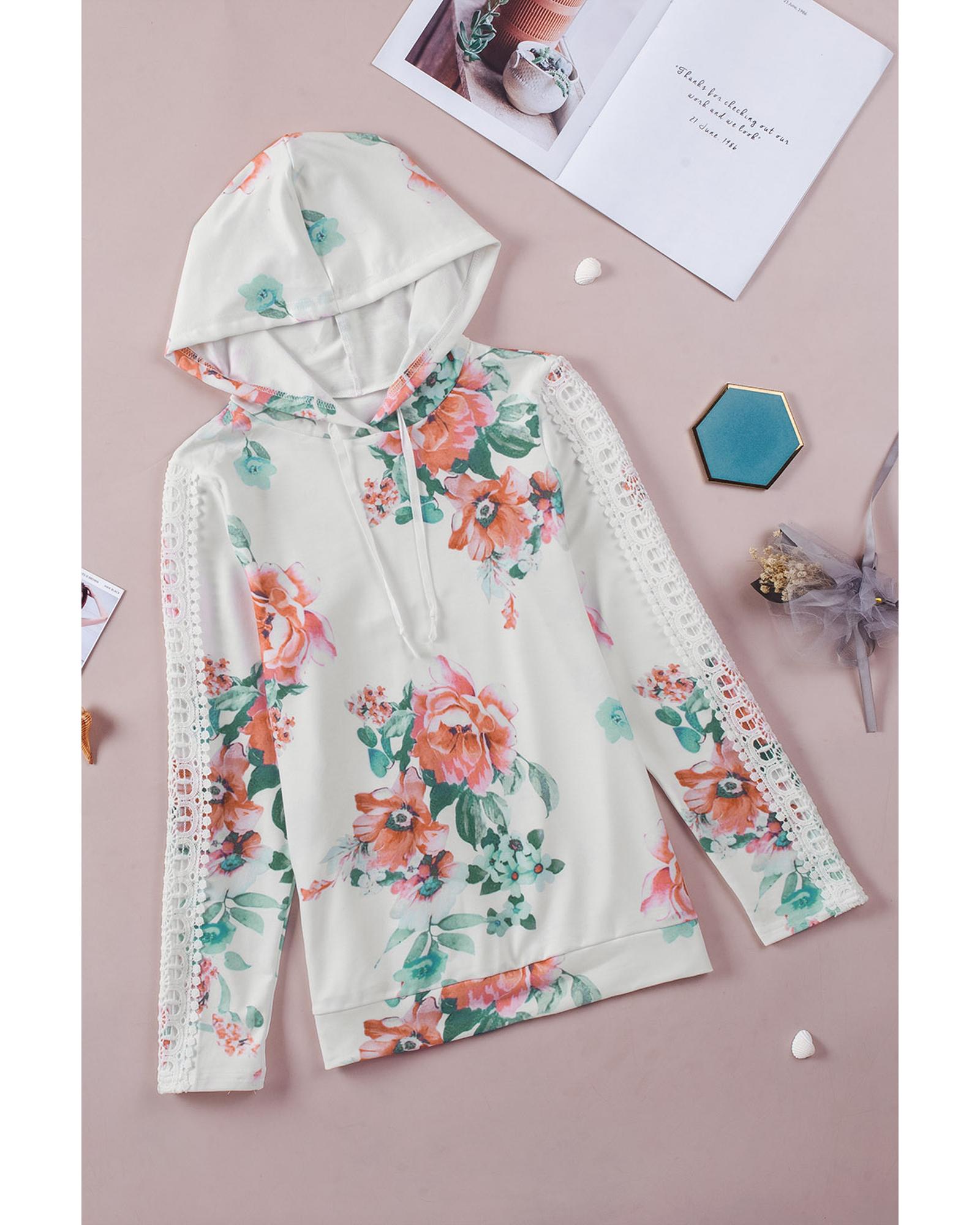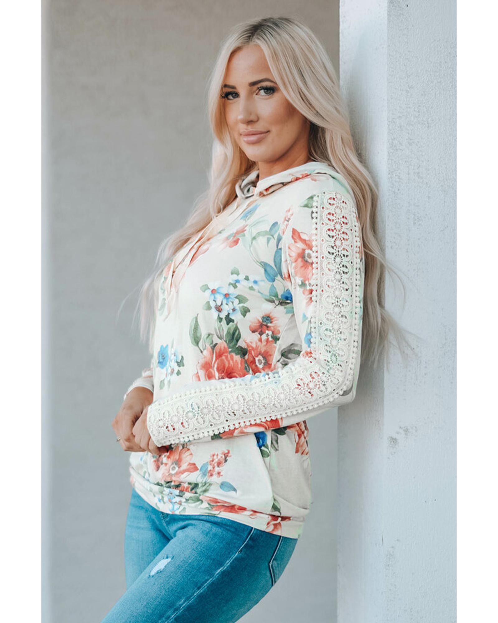 • Stylish and feminine Floral Print Lace Contrast Long Sleeve Hoodie