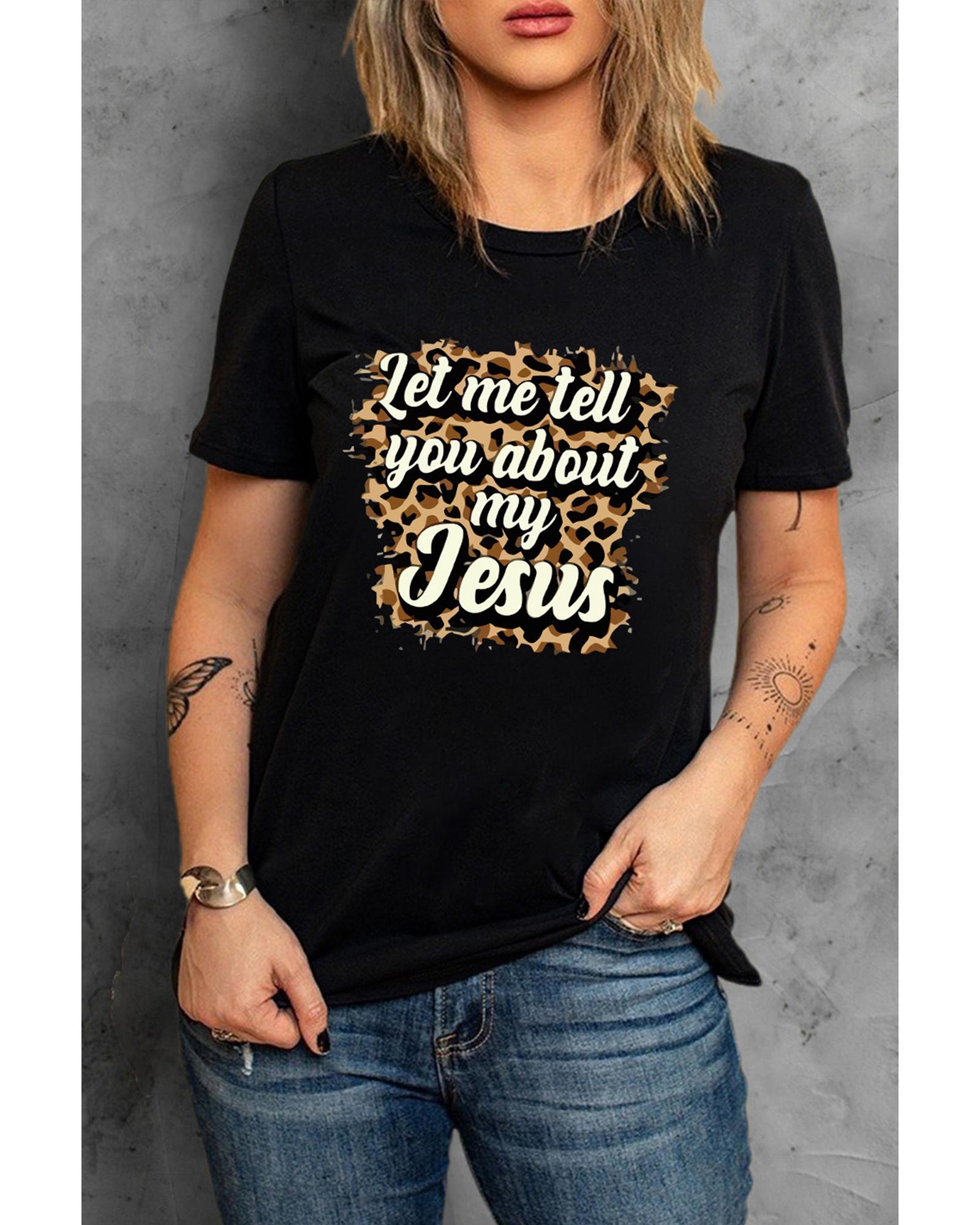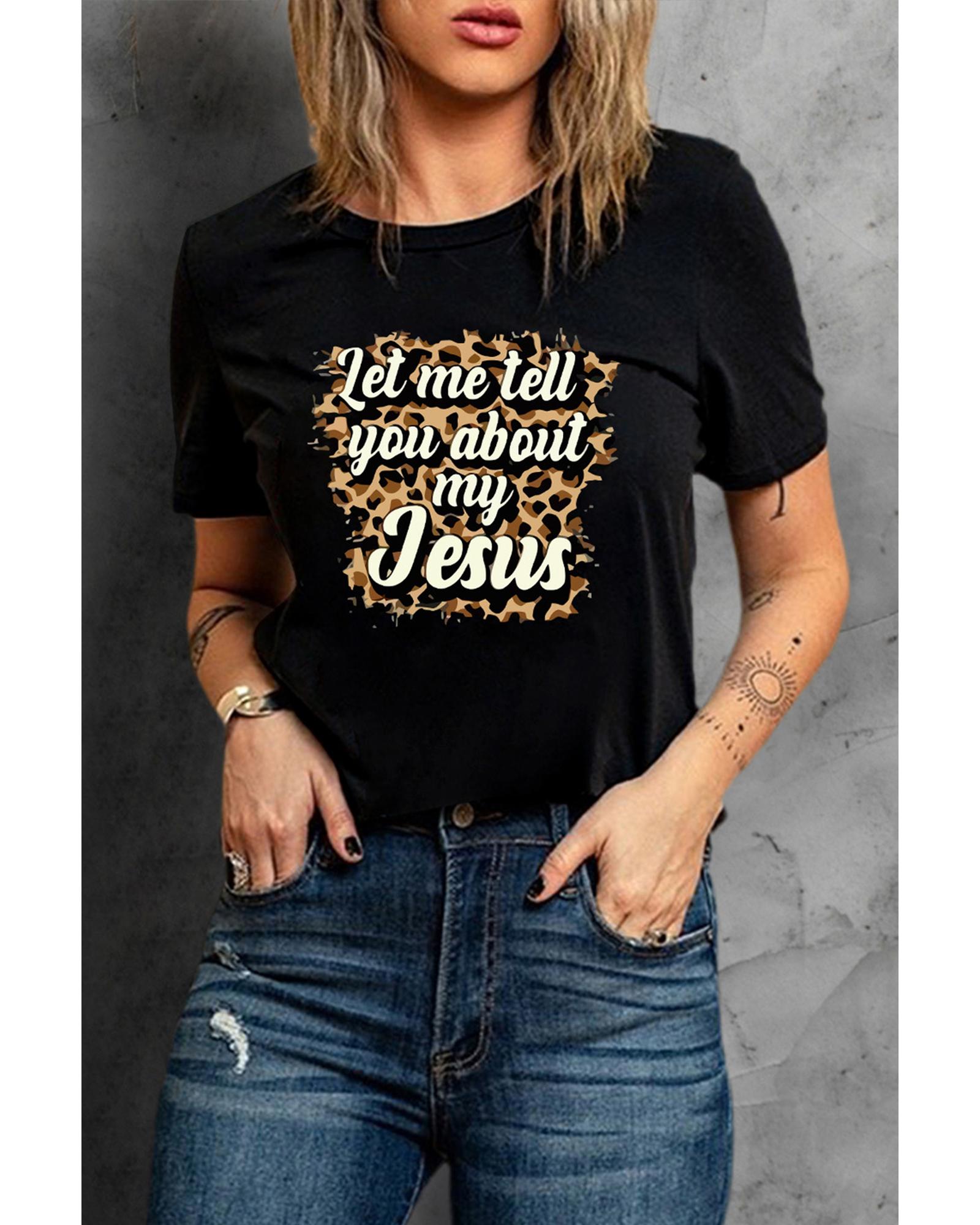 Azura Exchange Leopard Letter Print Crewneck Graphic Tee – S