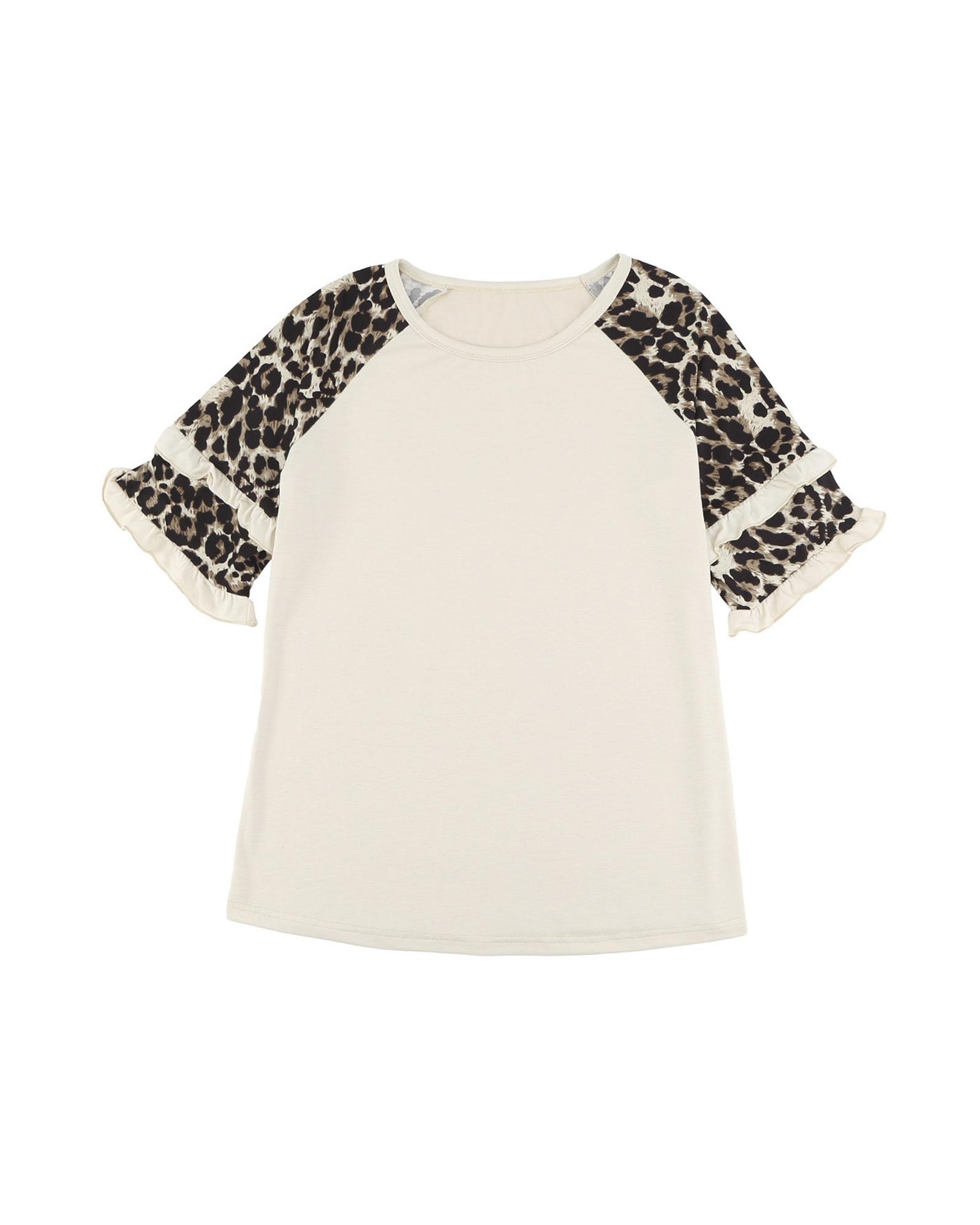 Azura Exchange Leopard Patchwork Ruffled Sleeve Top - S