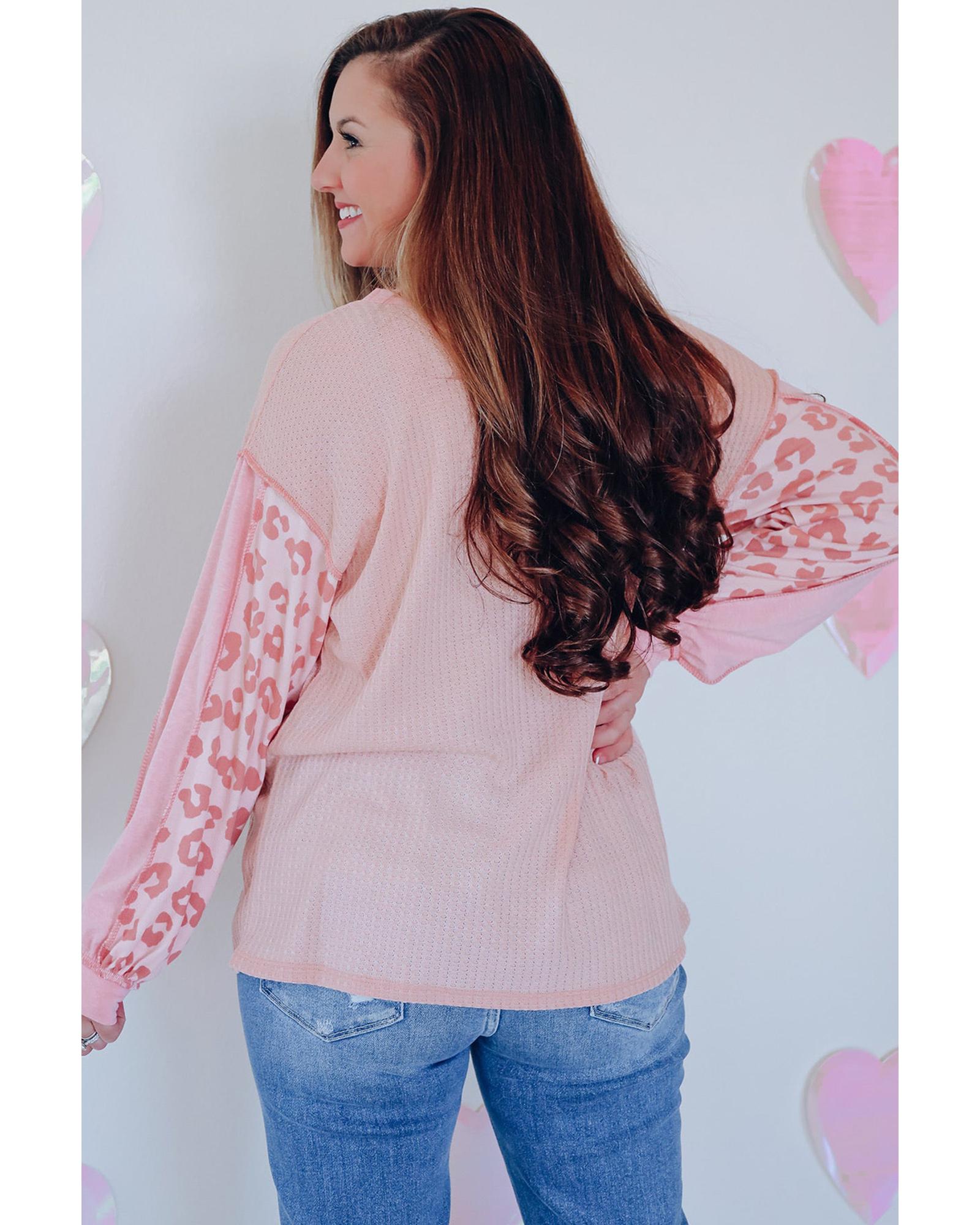 Azura Exchange Leopard Patchwork Waffle Knit Top – M