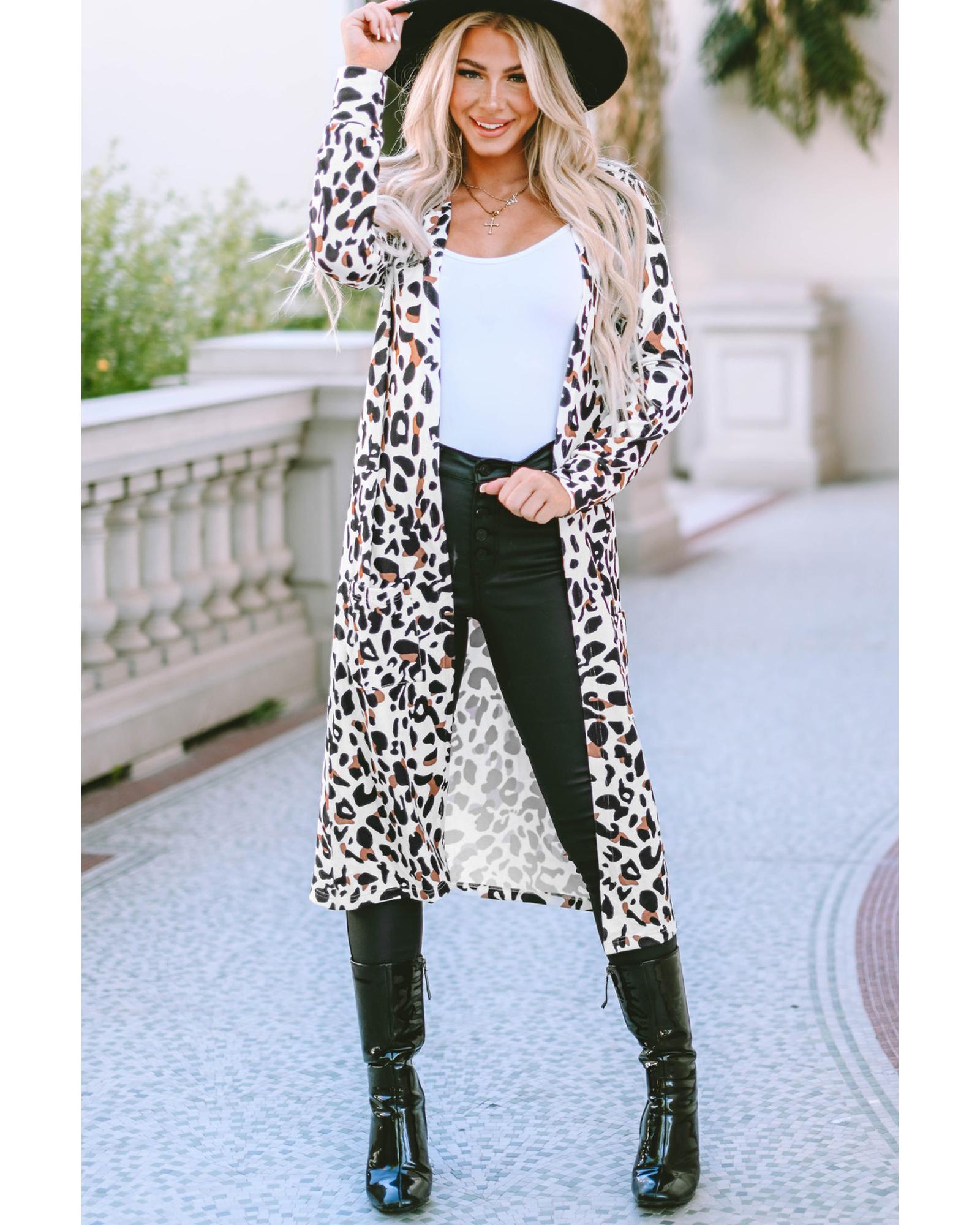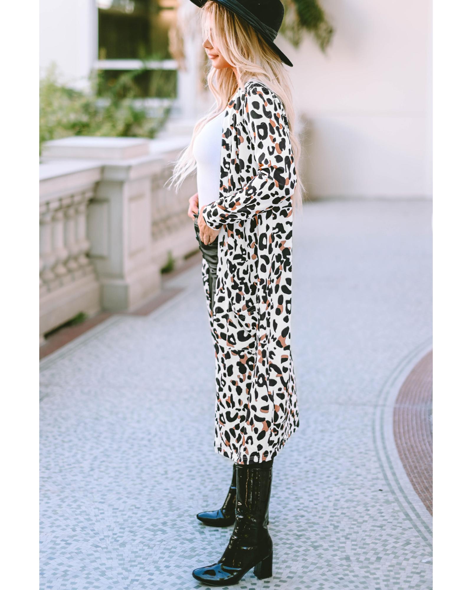Azura Exchange Leopard Pocketed Open Front Duster Cardigan – L