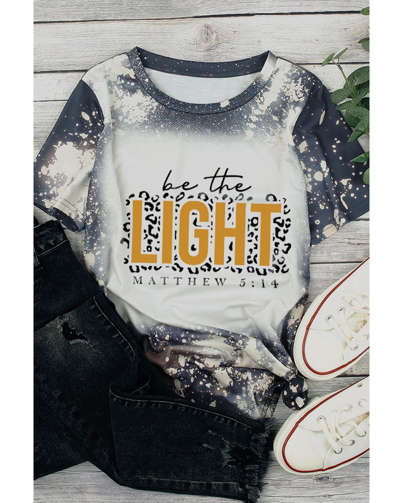 - Multicolor LIGHT letter leopard print color block short sleeve top