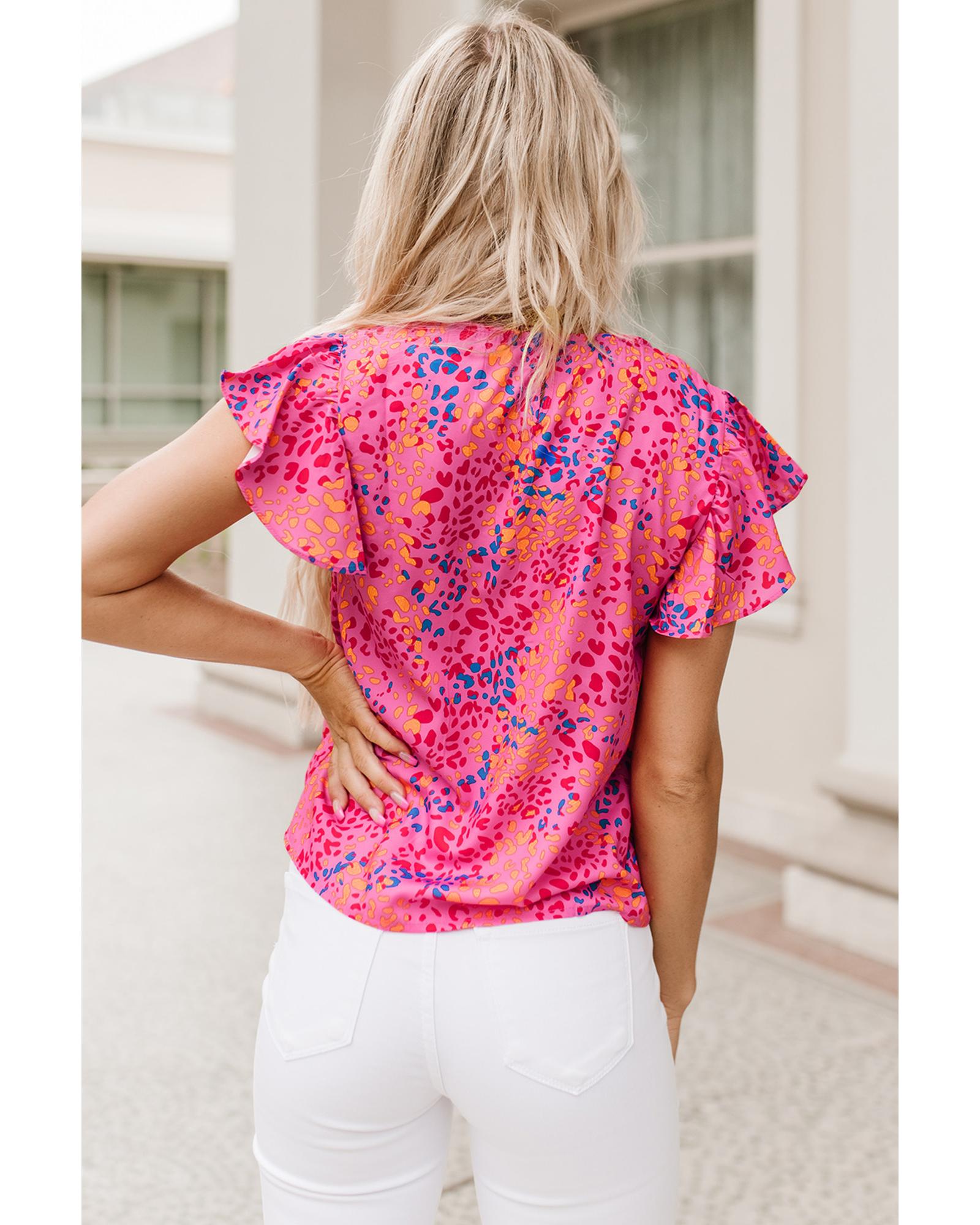Azura Exchange Leopard Print Flutter Sleeve Blouse – L