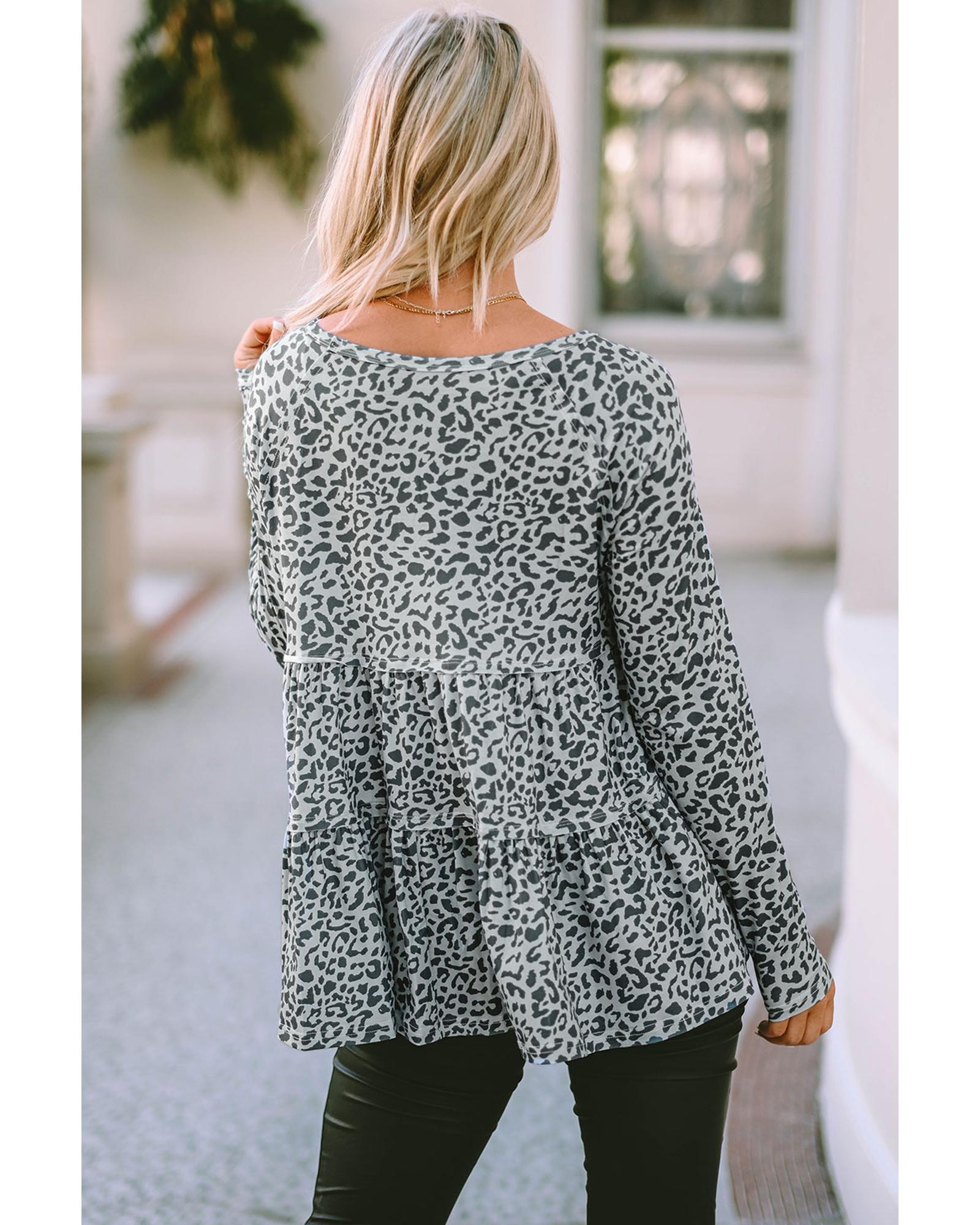 - Stylish and trendy Leopard Print Long Sleeve Ruffled Babydoll Blouse