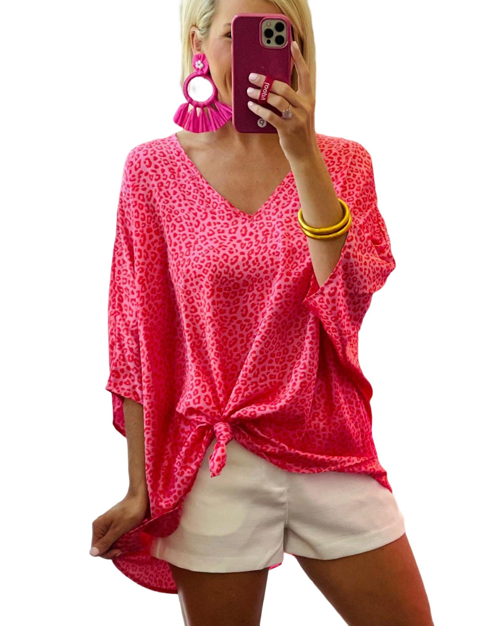 Azura Exchange Leopard Print Oversized V Neck Top – M