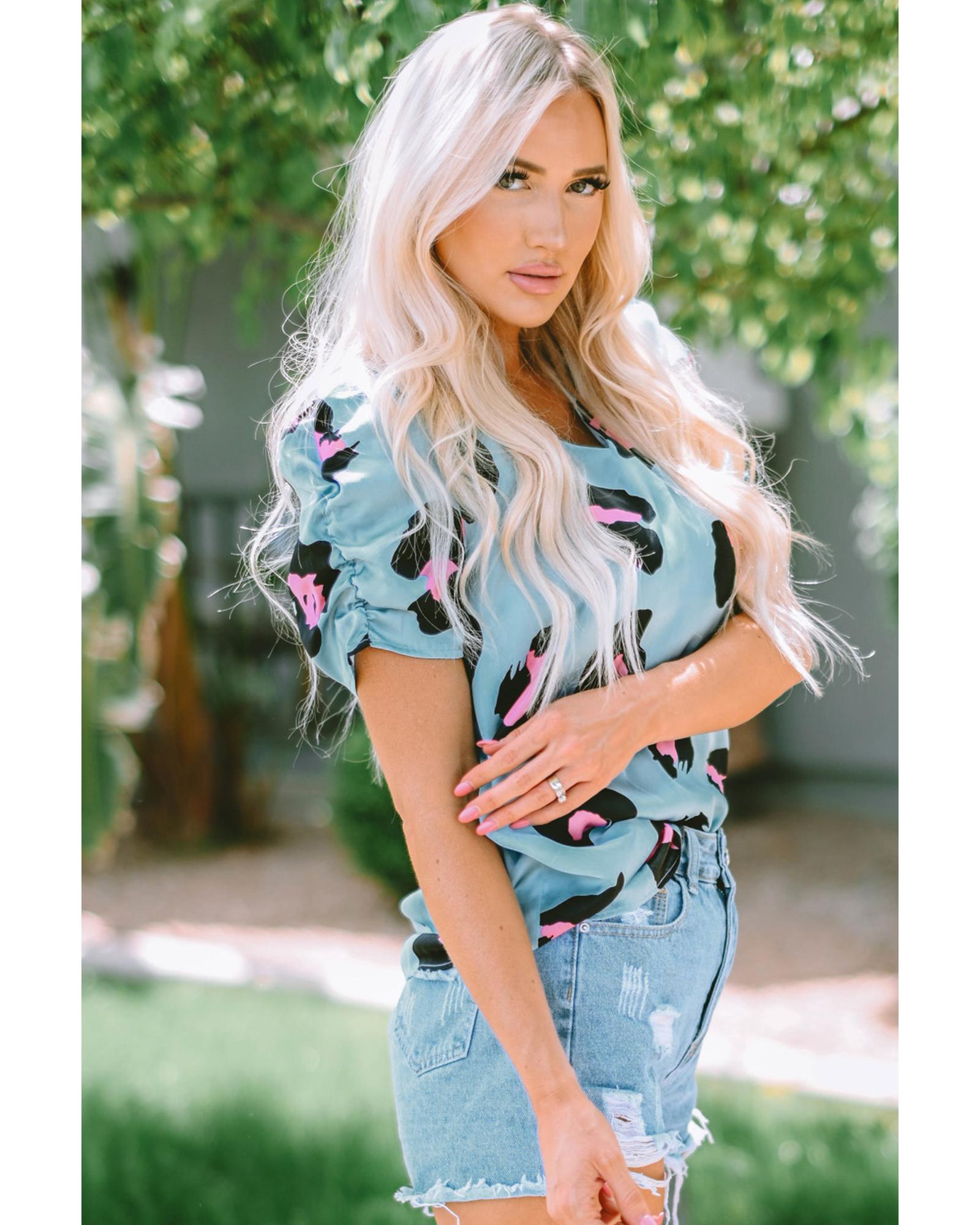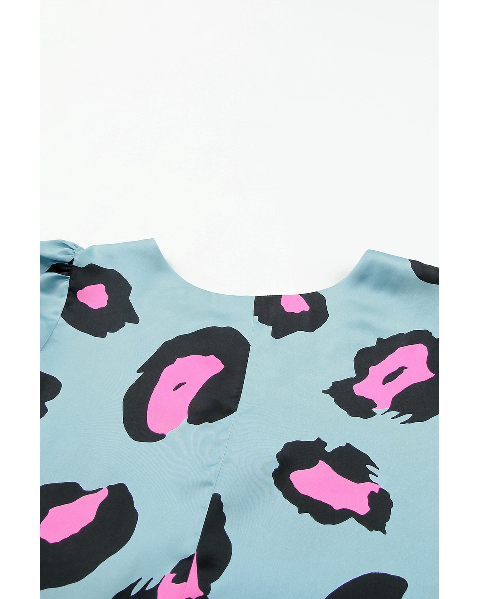 Azura Exchange Leopard Print Ruched Short Sleeve Blouse – M
