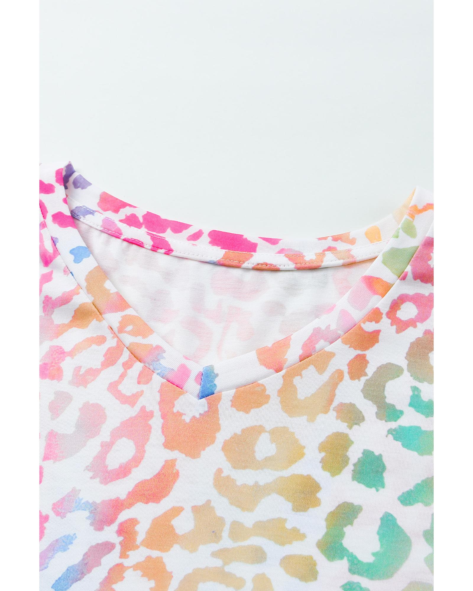Azura Exchange Leopard V Neck Short Sleeve Top – L