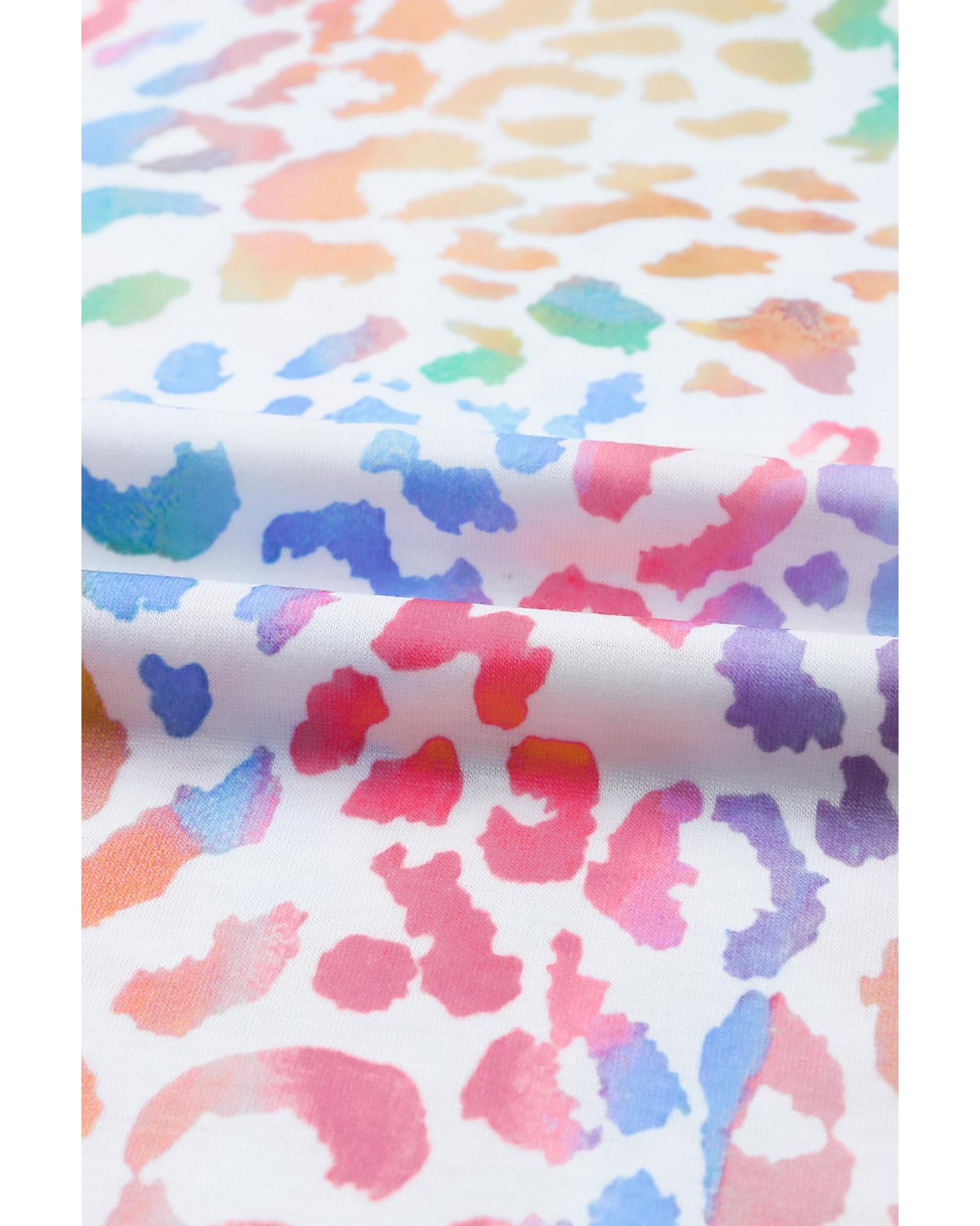 - Colorful Leopard V Neck Short Sleeve Top