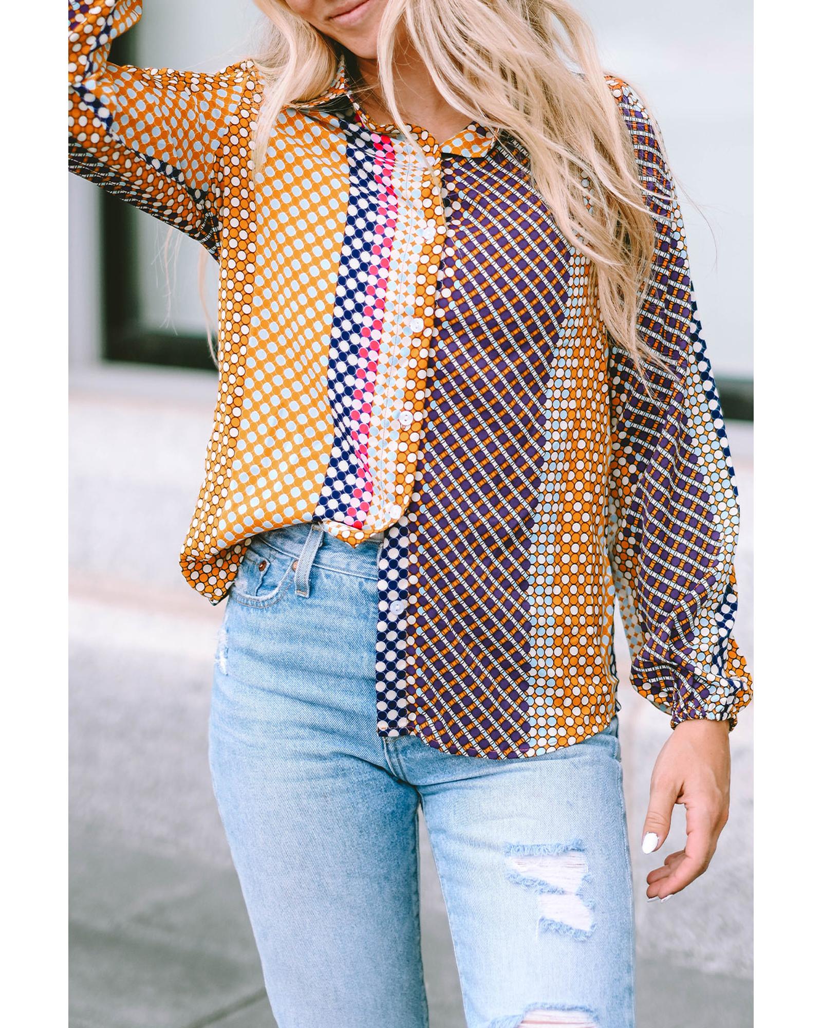 Azura Exchange Long Sleeve Dot Print Button Down Shirt - XL