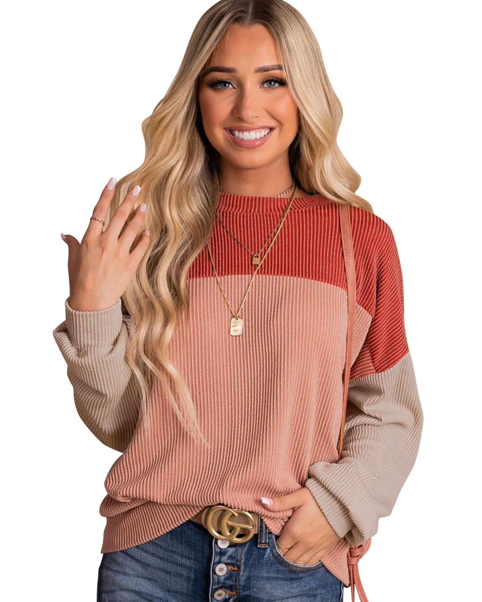Azura Exchange Color Block Ribbed Long Sleeve Top - L Original price was: $60.99.Current price is: $32.99.