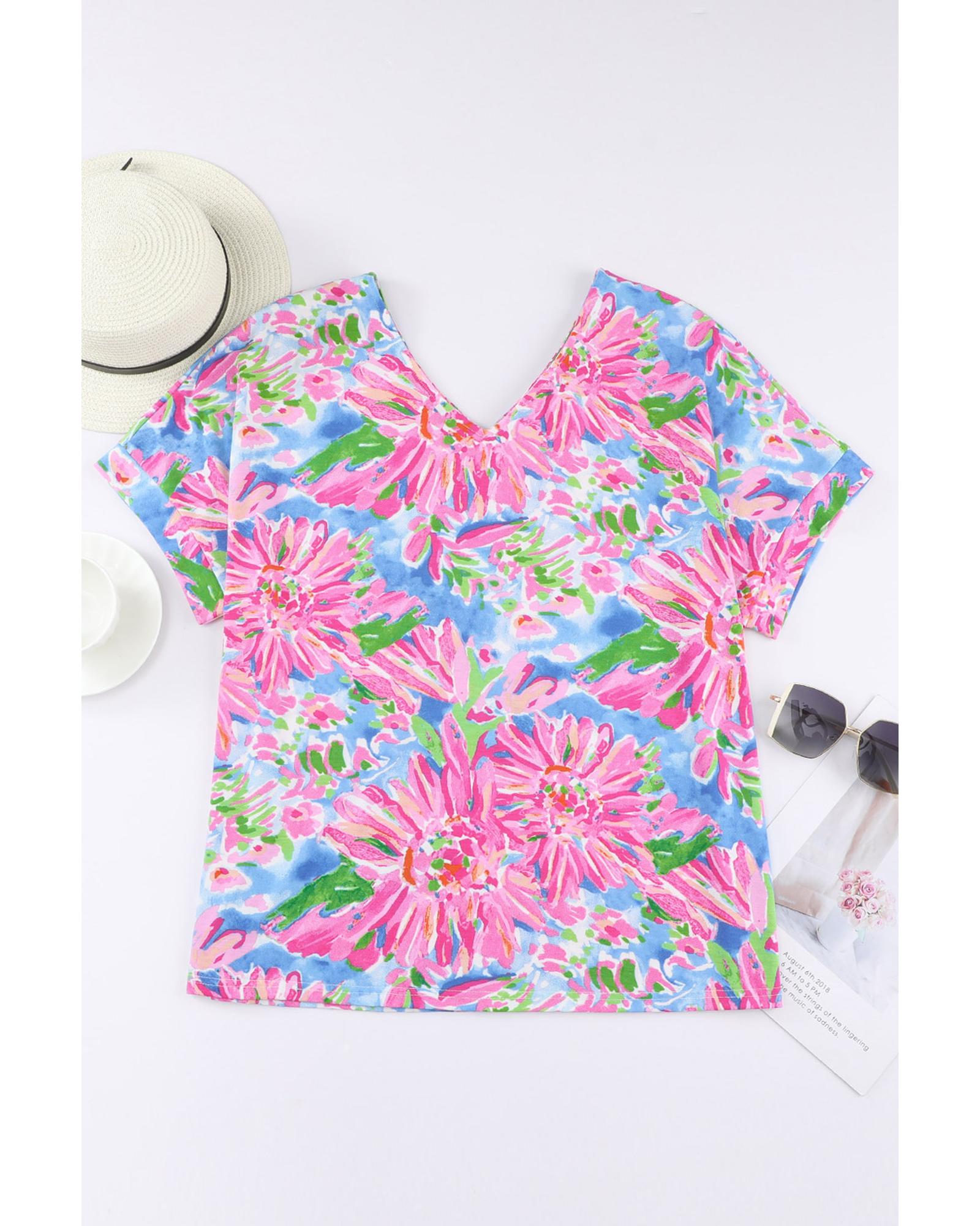 Azura Exchange Loose Fit Floral Print V Neck T Shirt - S Original price was: $51.99.Current price is: $27.99.