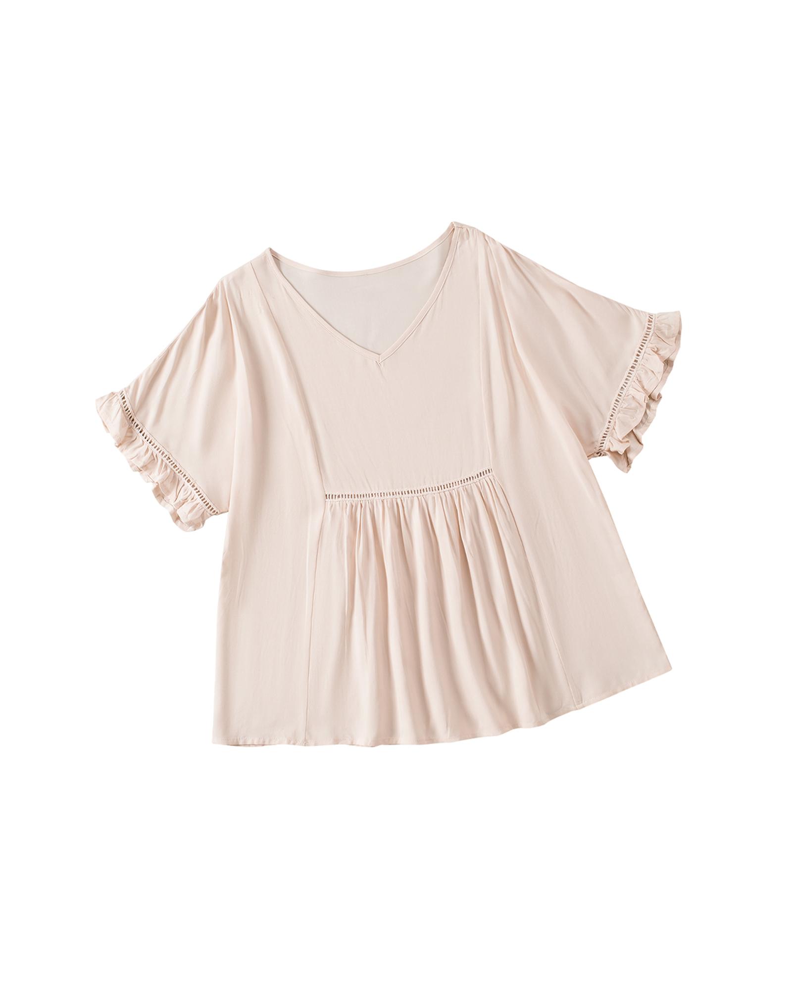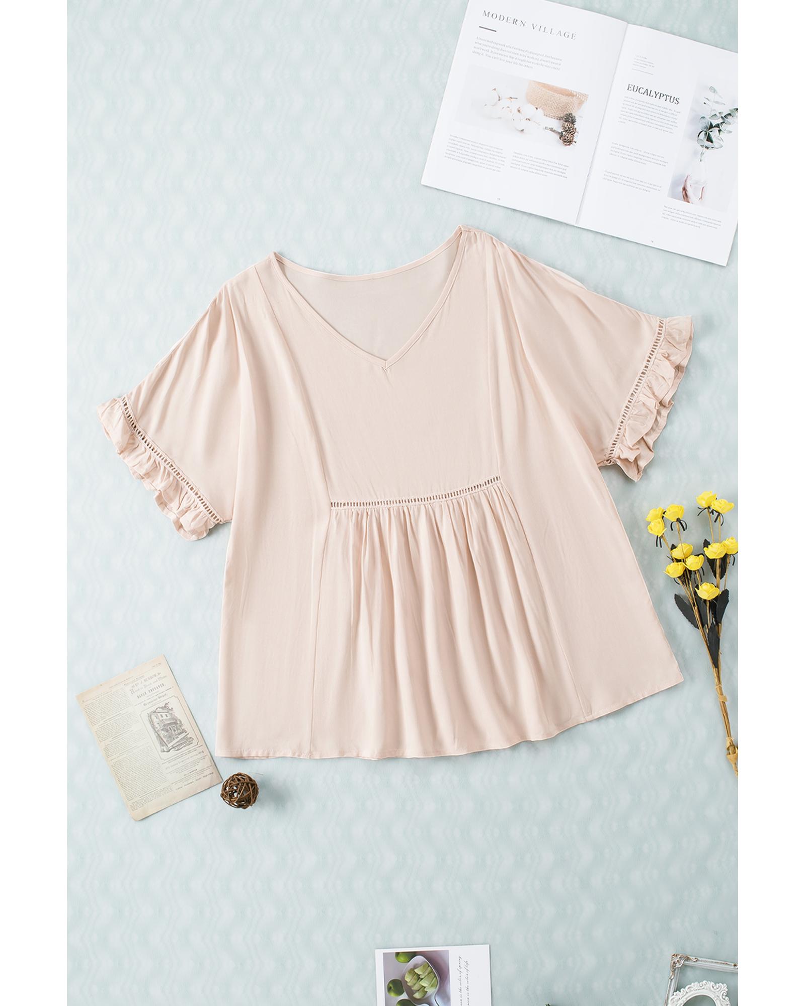 - Stylish and feminine Ruffled Lace Detail Loose V Neck Top
