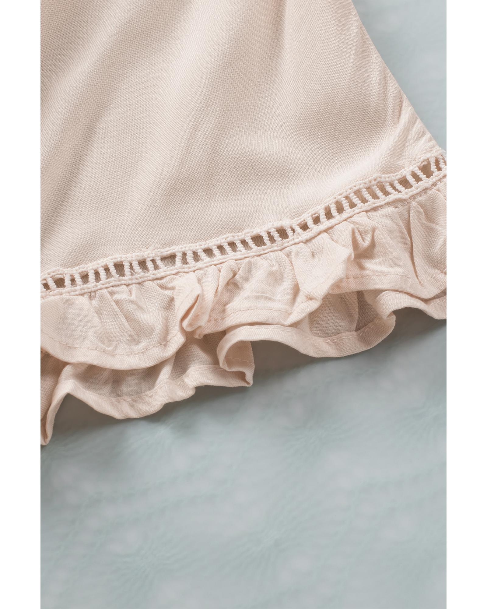 - Stylish and feminine Ruffled Lace Detail Loose V Neck Top