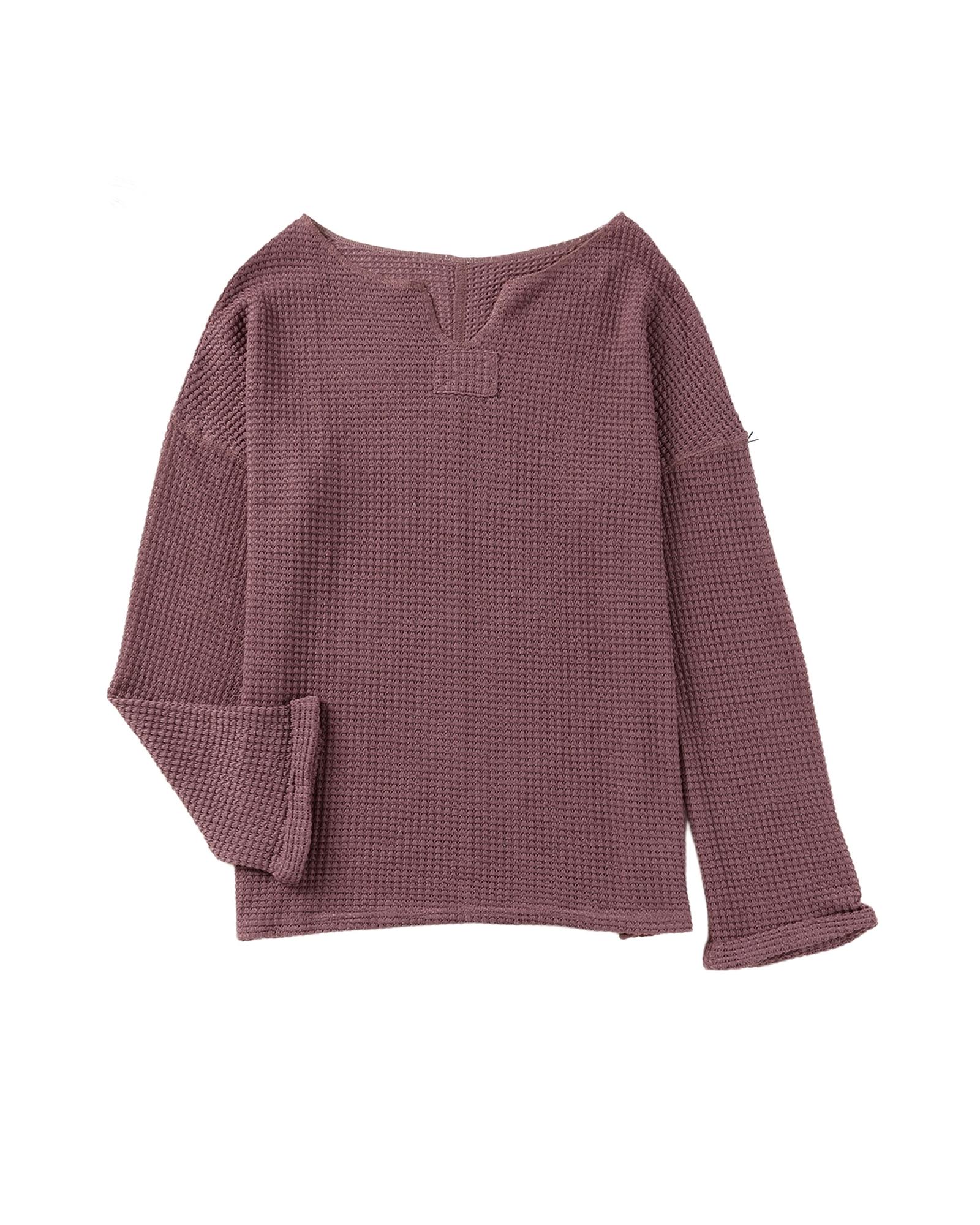 - Luxurious Waffle Knit Loose Long Sleeve Top