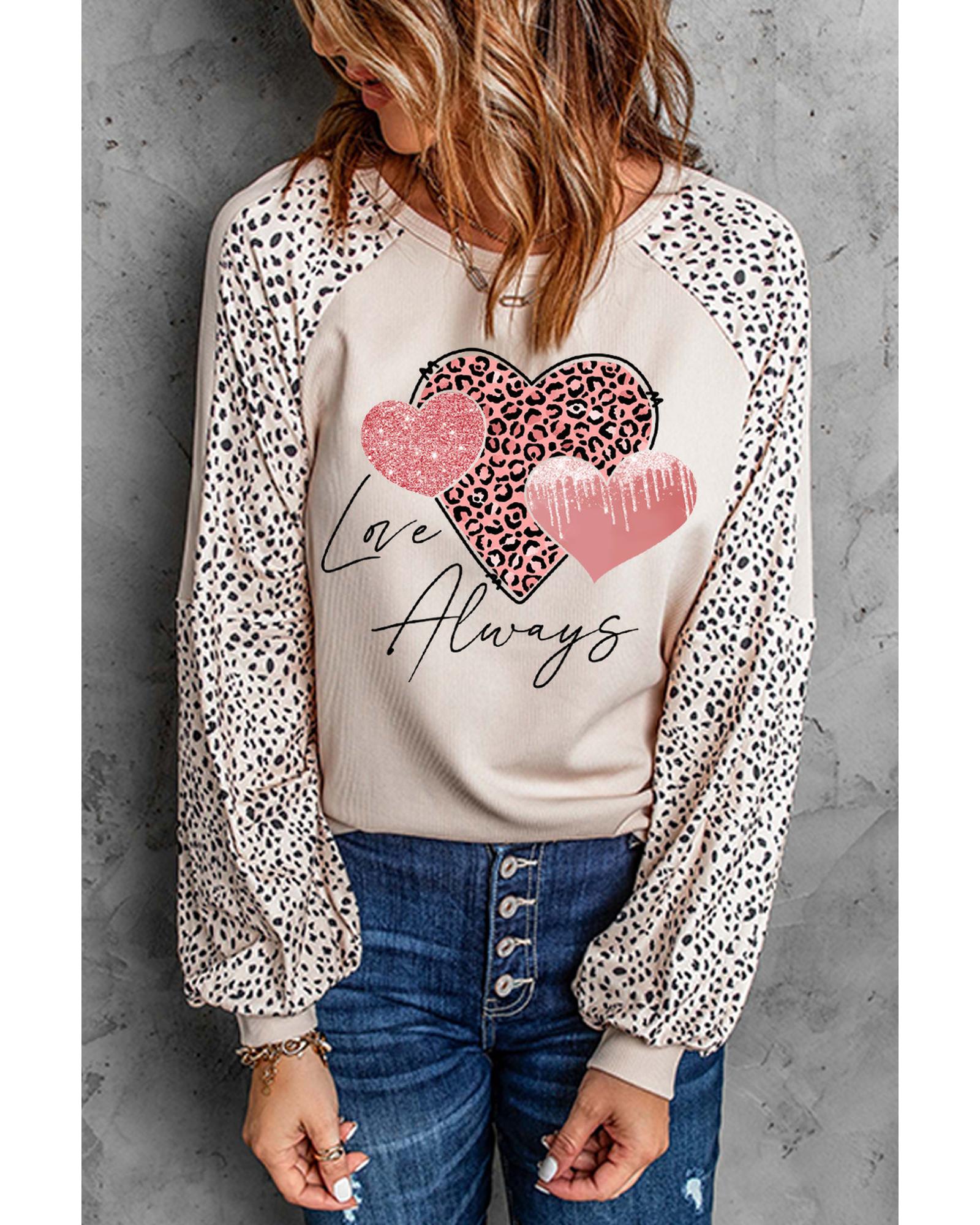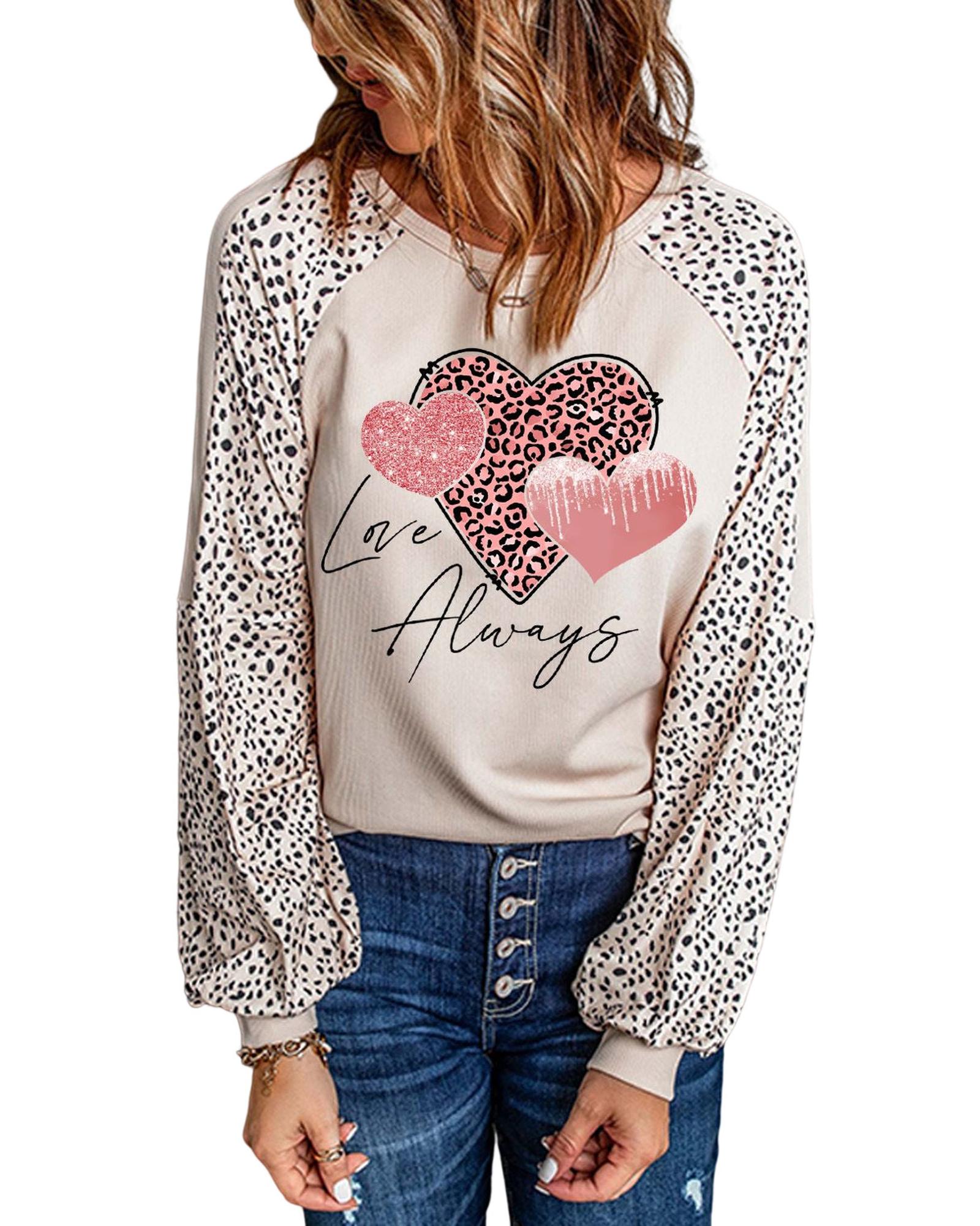 Azura Exchange Love Always Heart Leopard Color Block Top – L