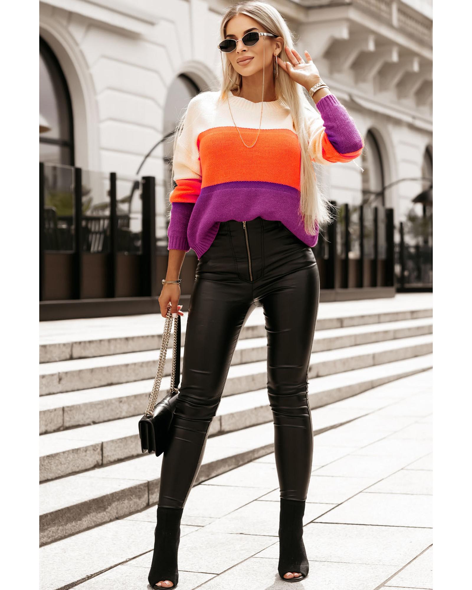 Azura Exchange Multicolor Color Block Drop Shoulder Round Neck Knit Sweater – S
