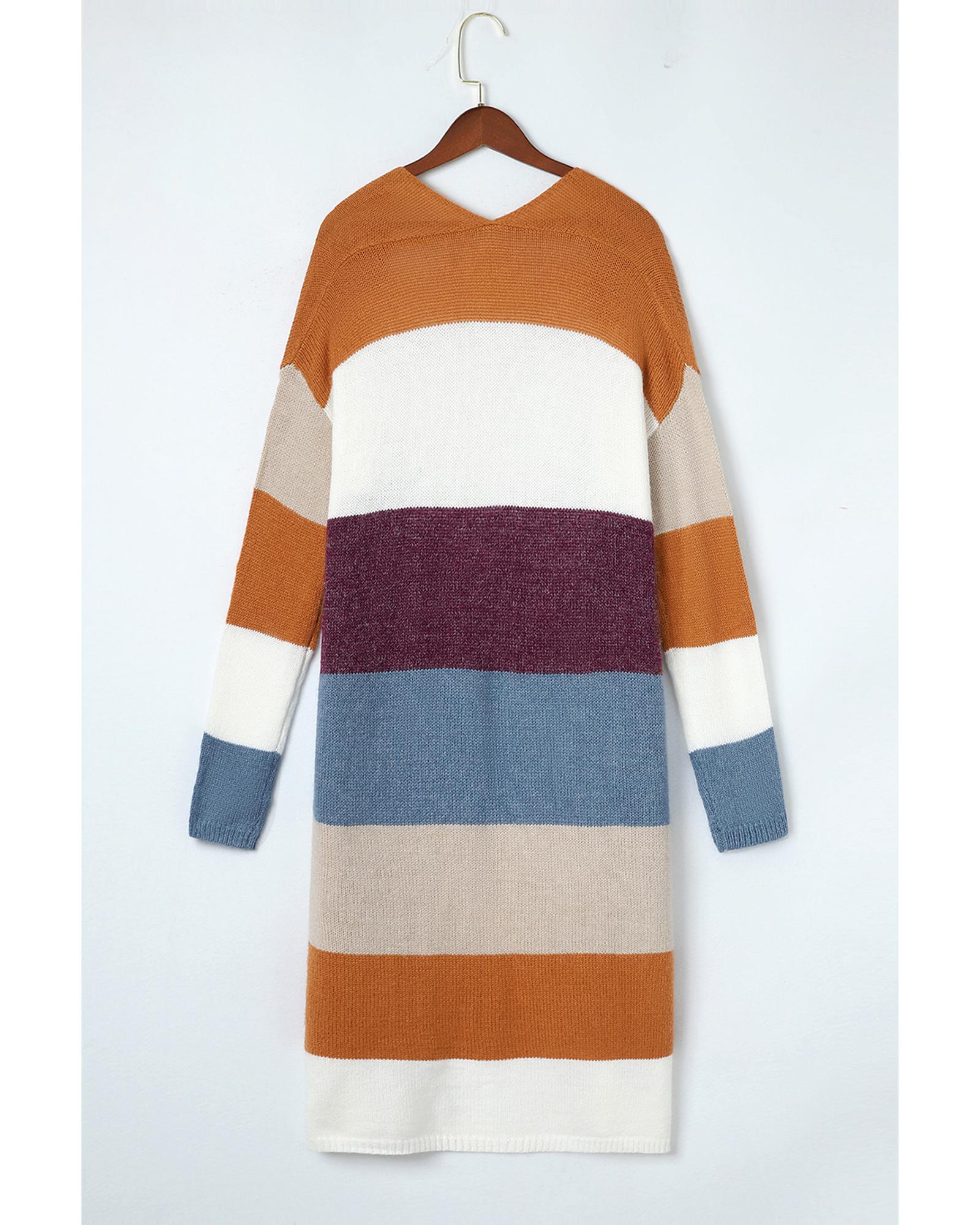 Azura Exchange Multicolor Colorblock Open Front Long Knit Cardigan – L