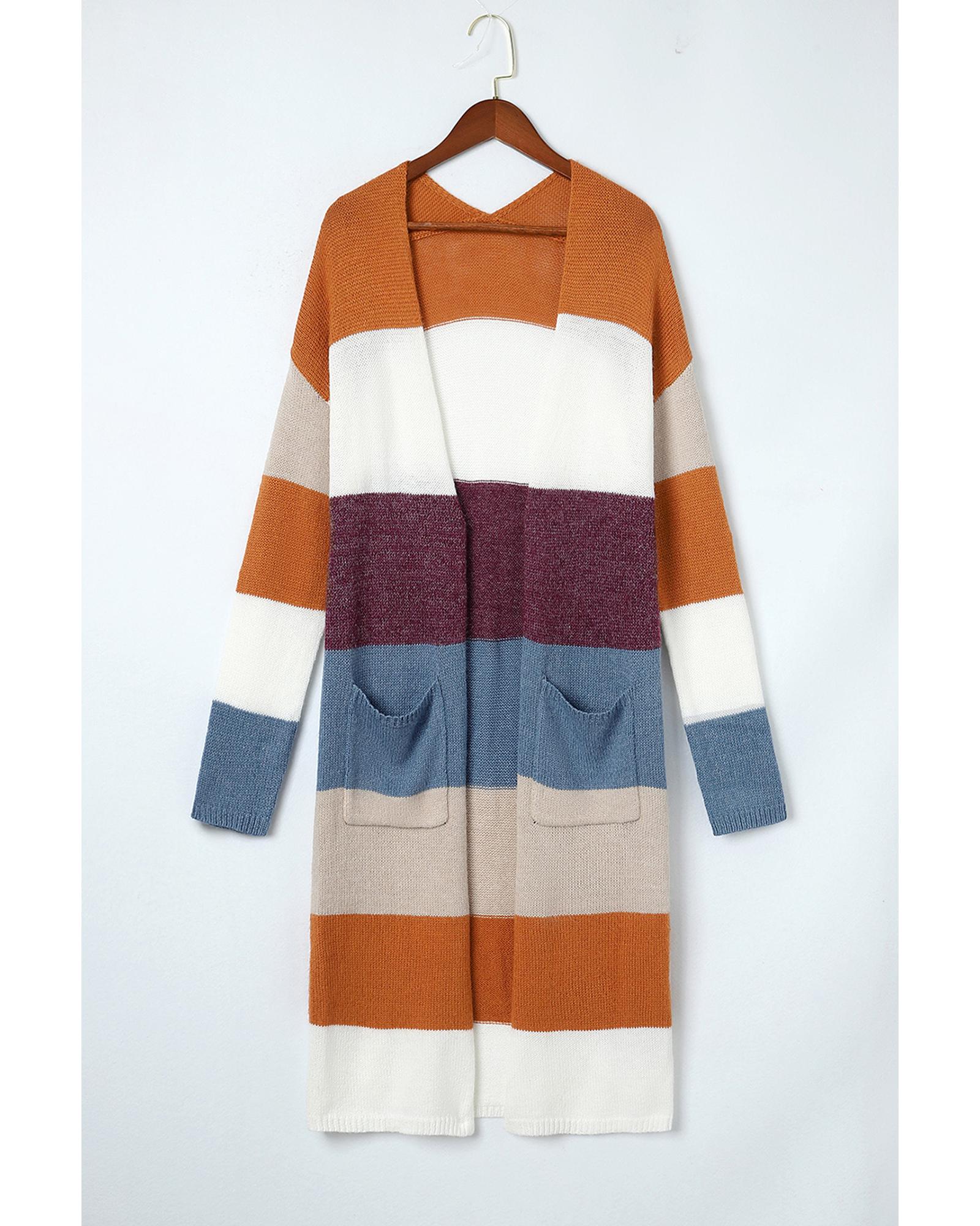 Azura Exchange Multicolor Colorblock Open Front Long Knit Cardigan – S
