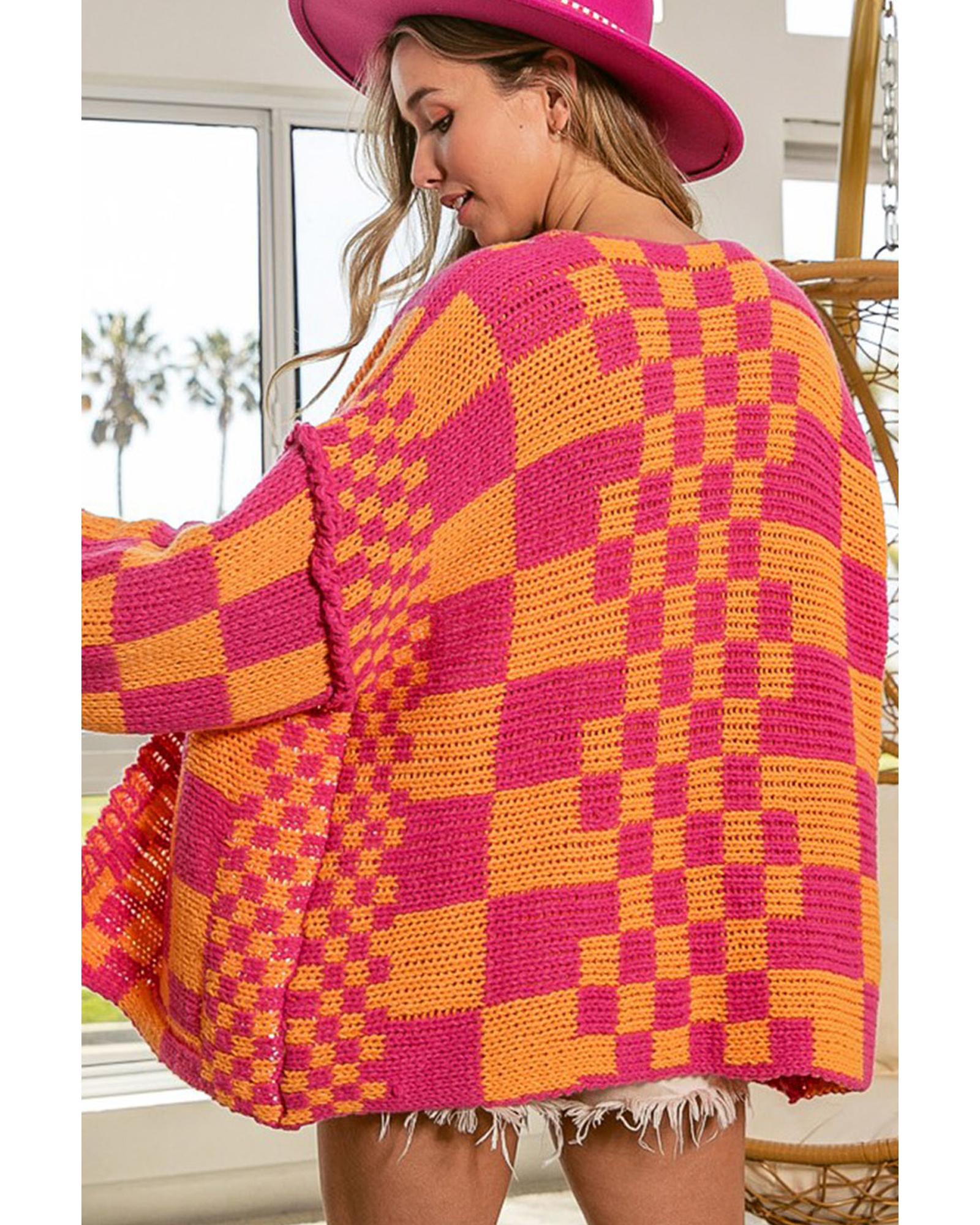 Azura Exchange Multicolor Open Front Mixed Checkered Pattern Knit Cardigan – XL