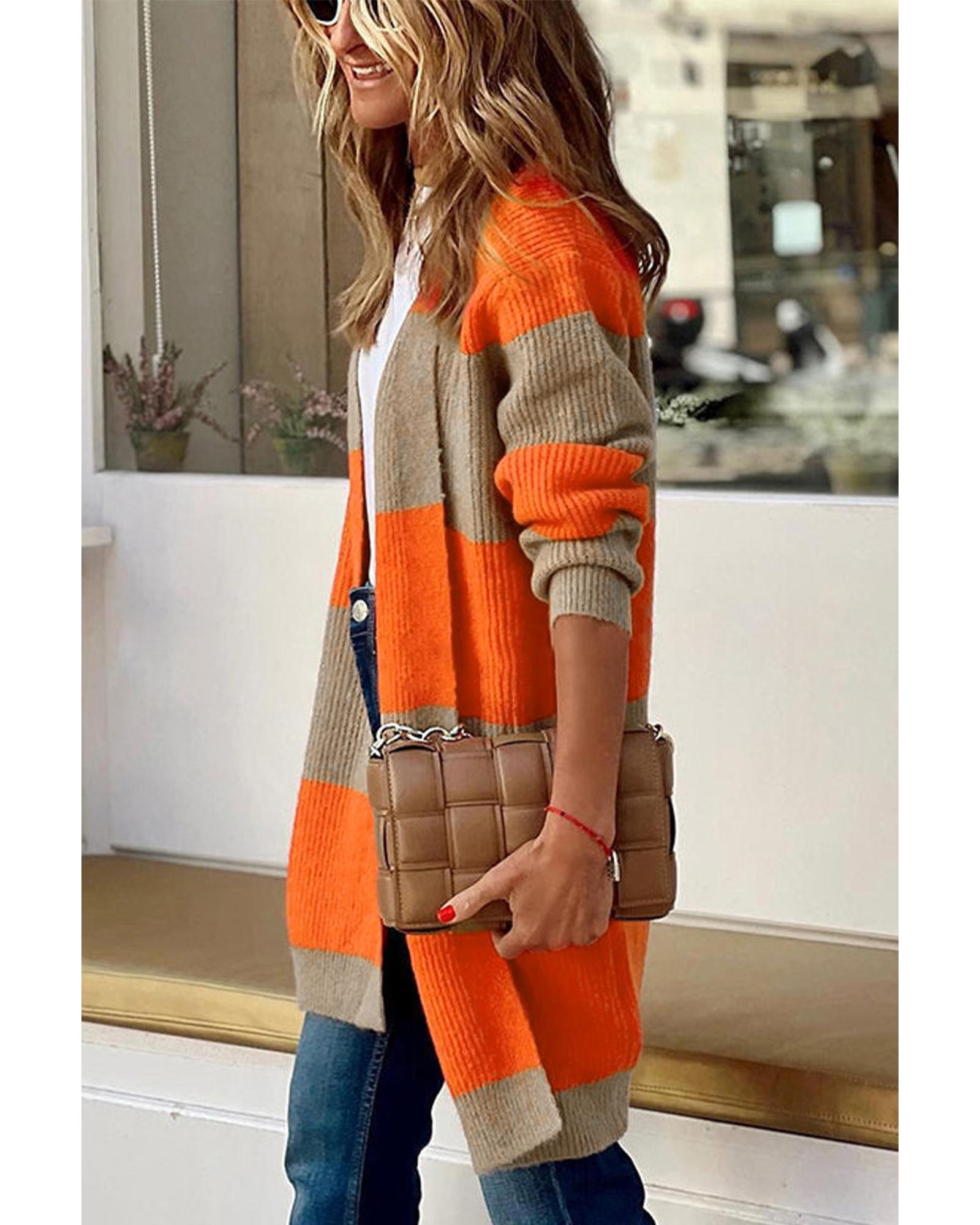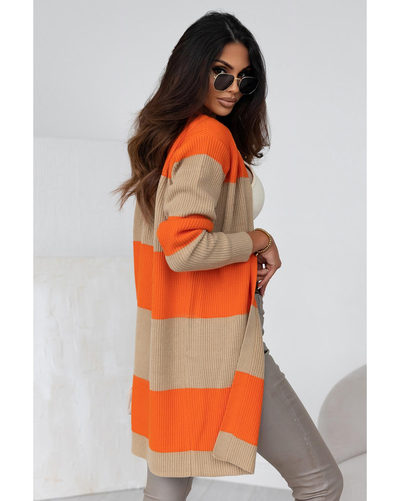 Azura Exchange Orange Colorblock Ribbed Knit Cardigan – 2XL