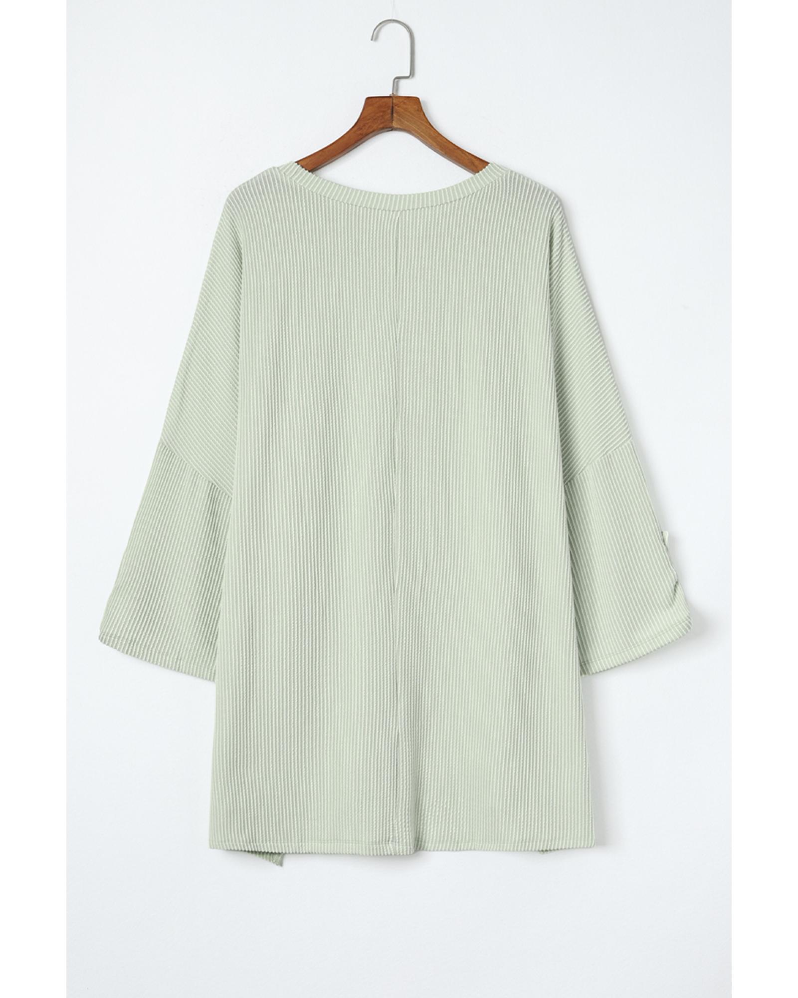 Azura Exchange Oversize Ribbed Roll-tab Sleeve Top – L