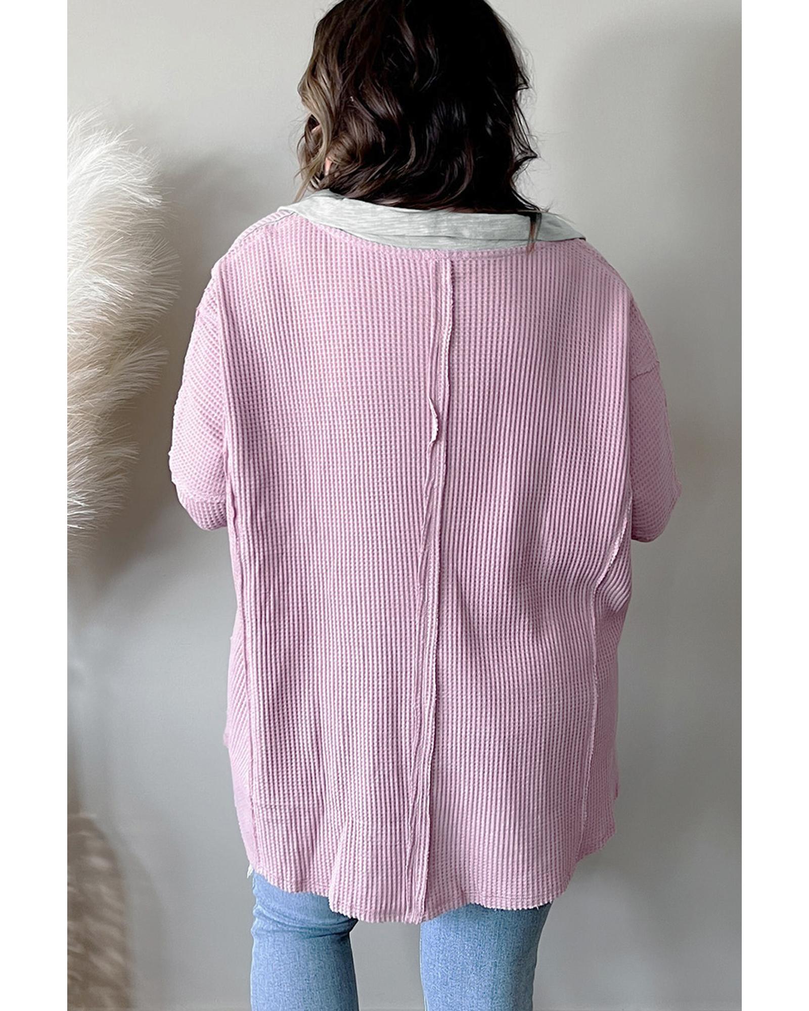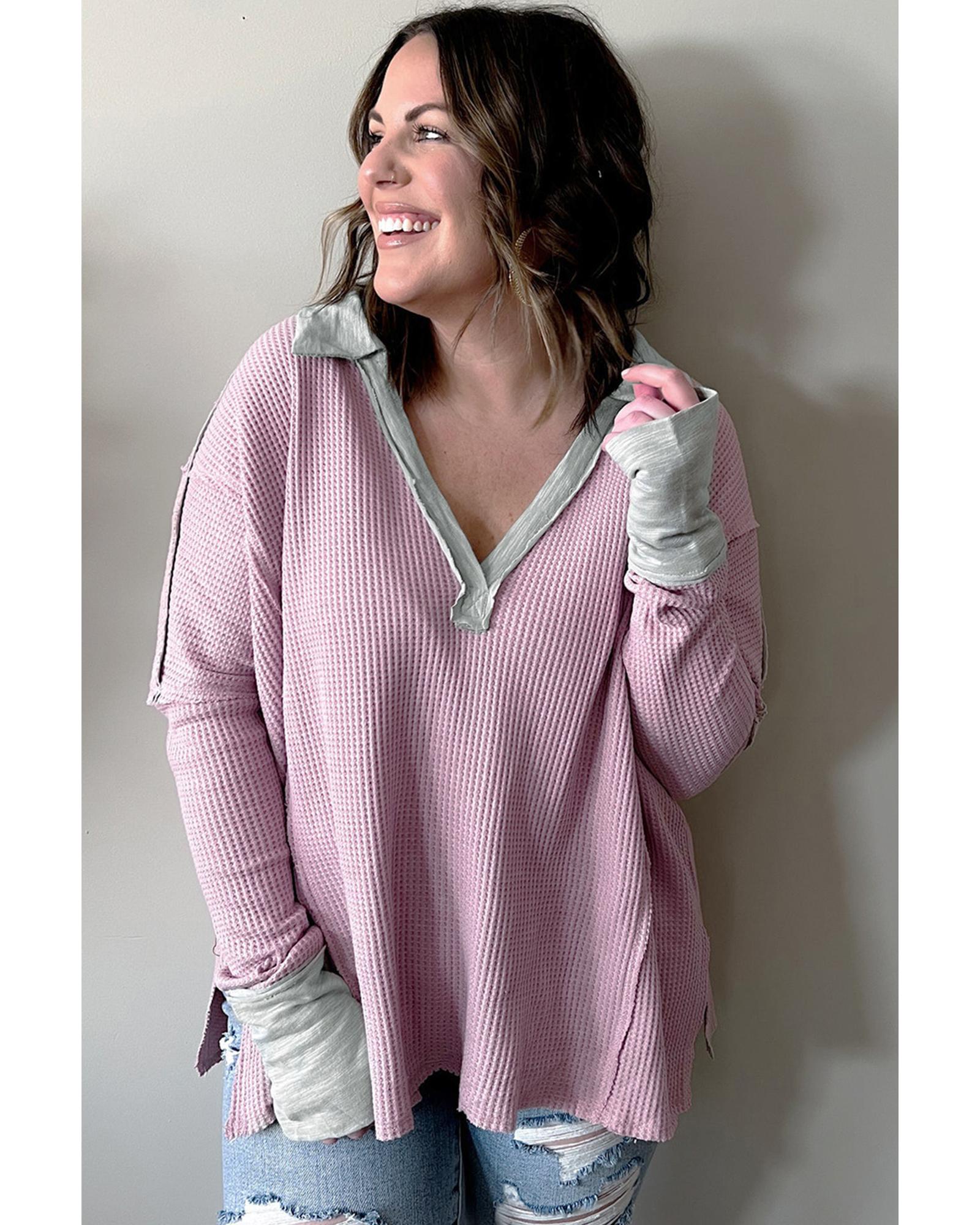 • Pink Plus Size Exposed Seam Waffle Knit Top