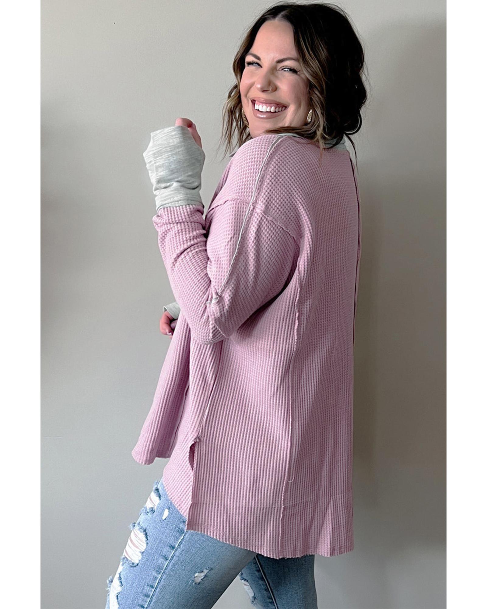 - Pink Plus Size Exposed Seam Waffle Knit Top