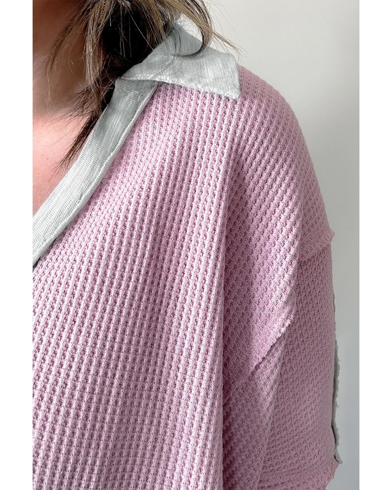 Azura Exchange Pink Plus Size Exposed Seam Waffle Knit Top – 3X