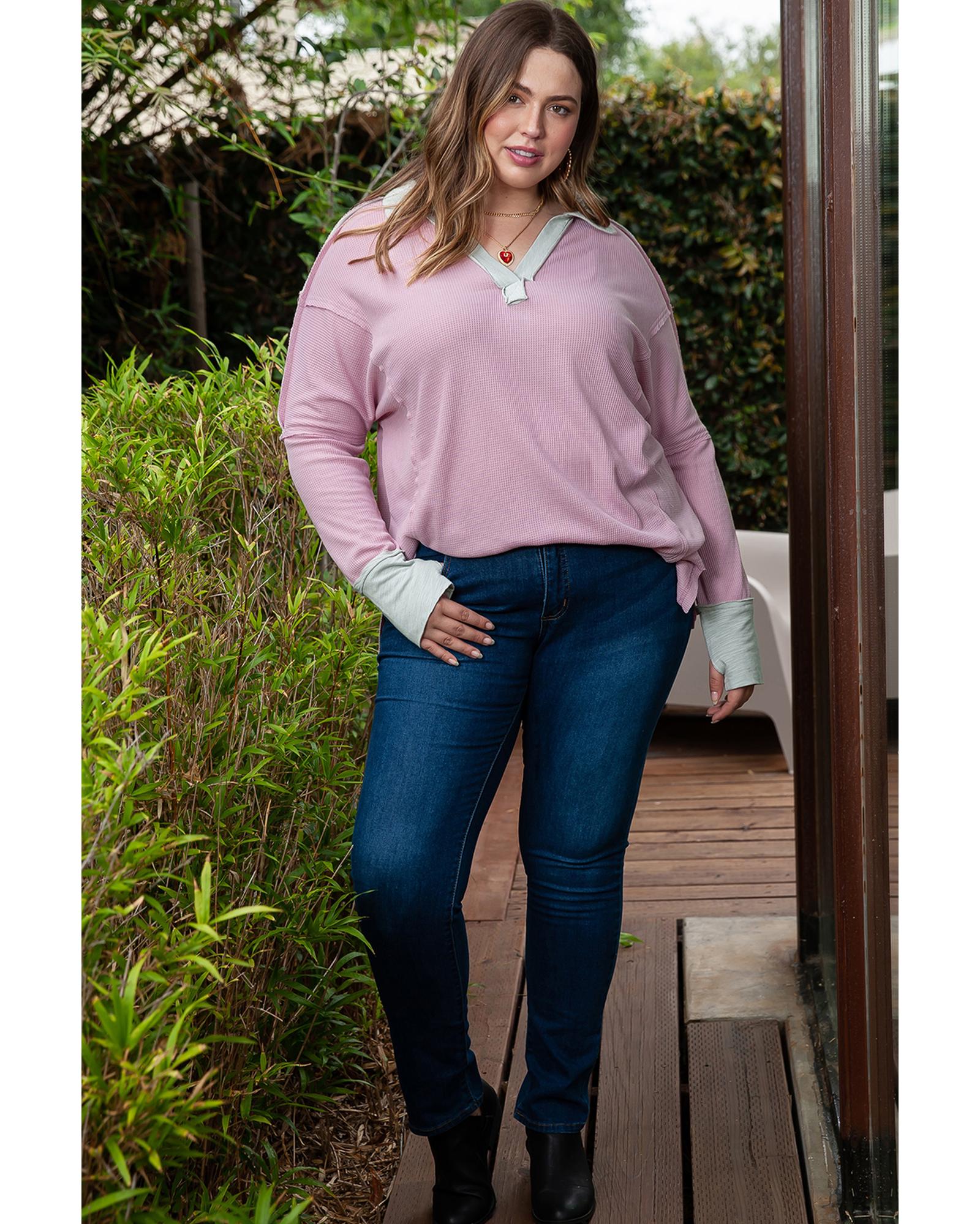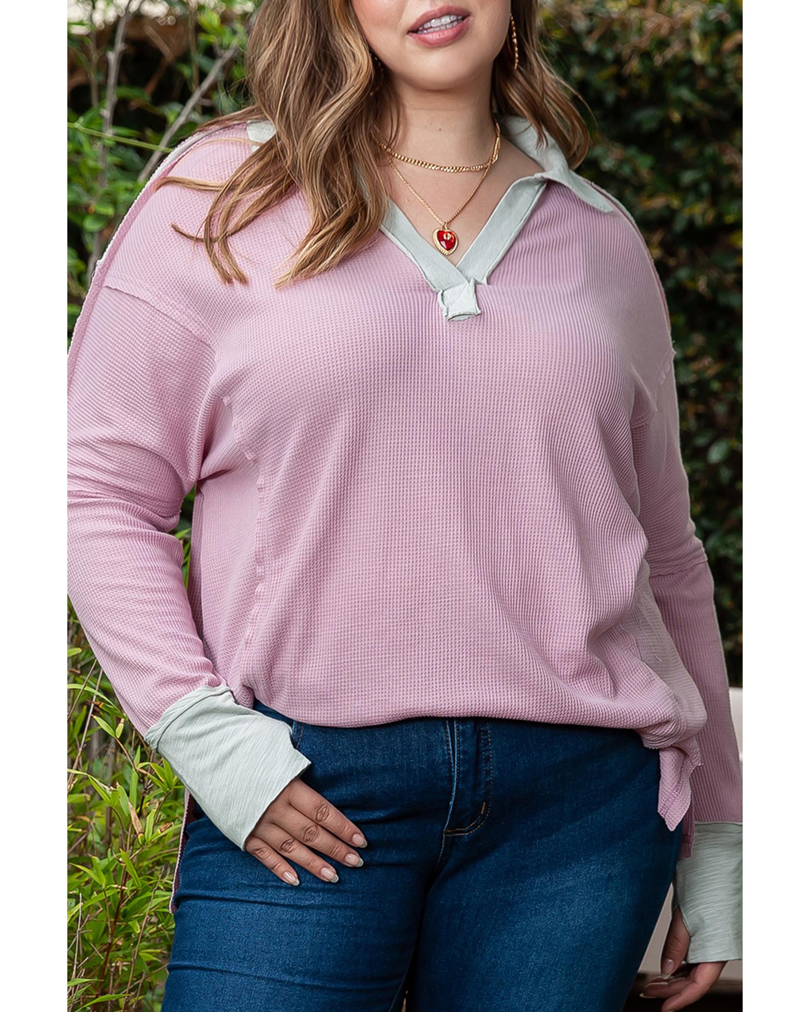 - Pink Plus Size Exposed Seam Waffle Knit Top